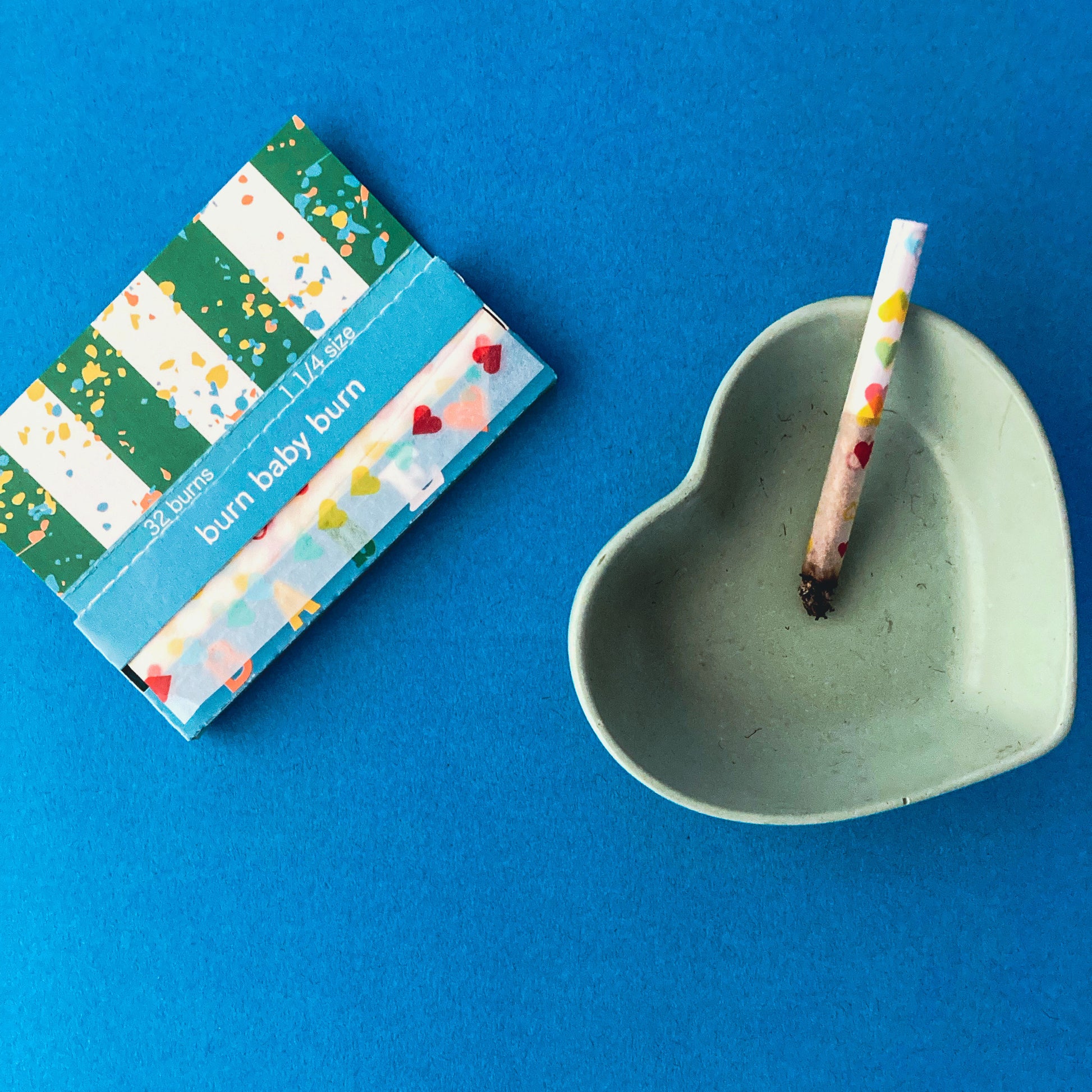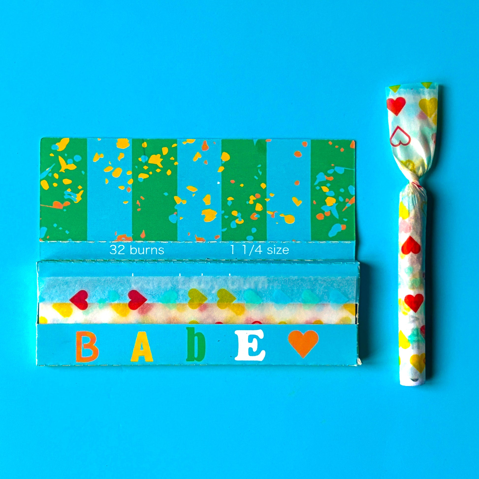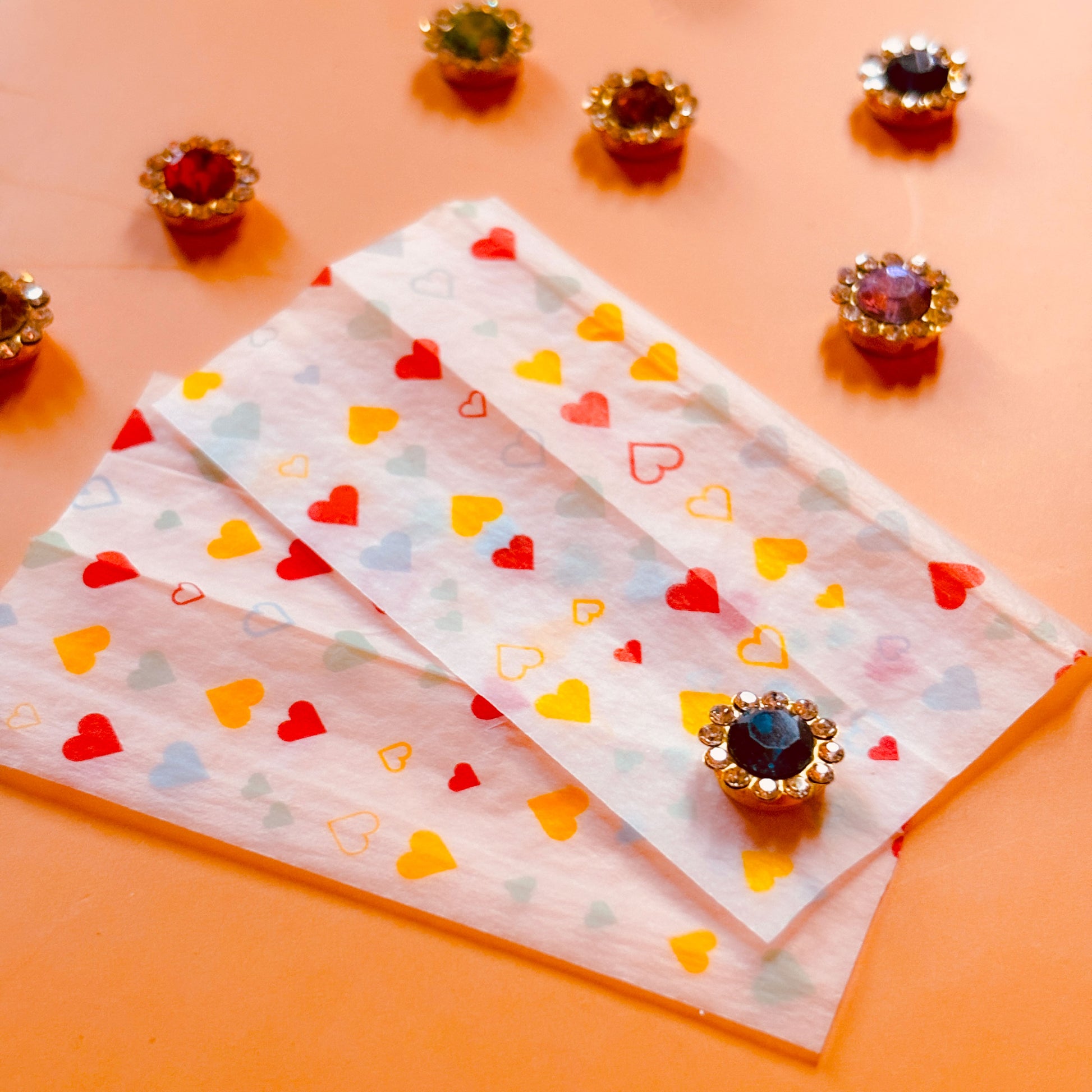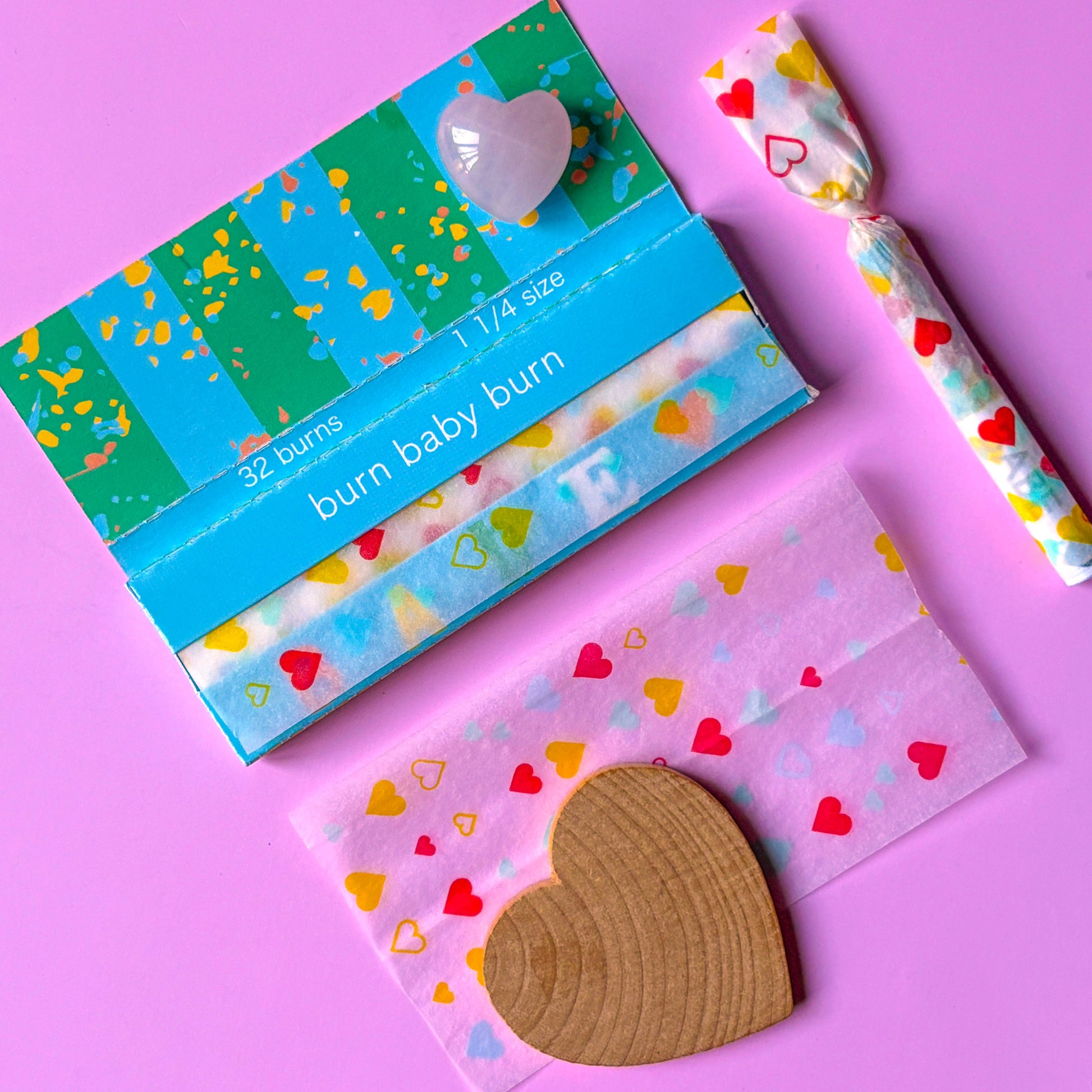 Colorful hearts carpet The Obsession papers. These lovable papers are printed on rice paper with plant-based inks.