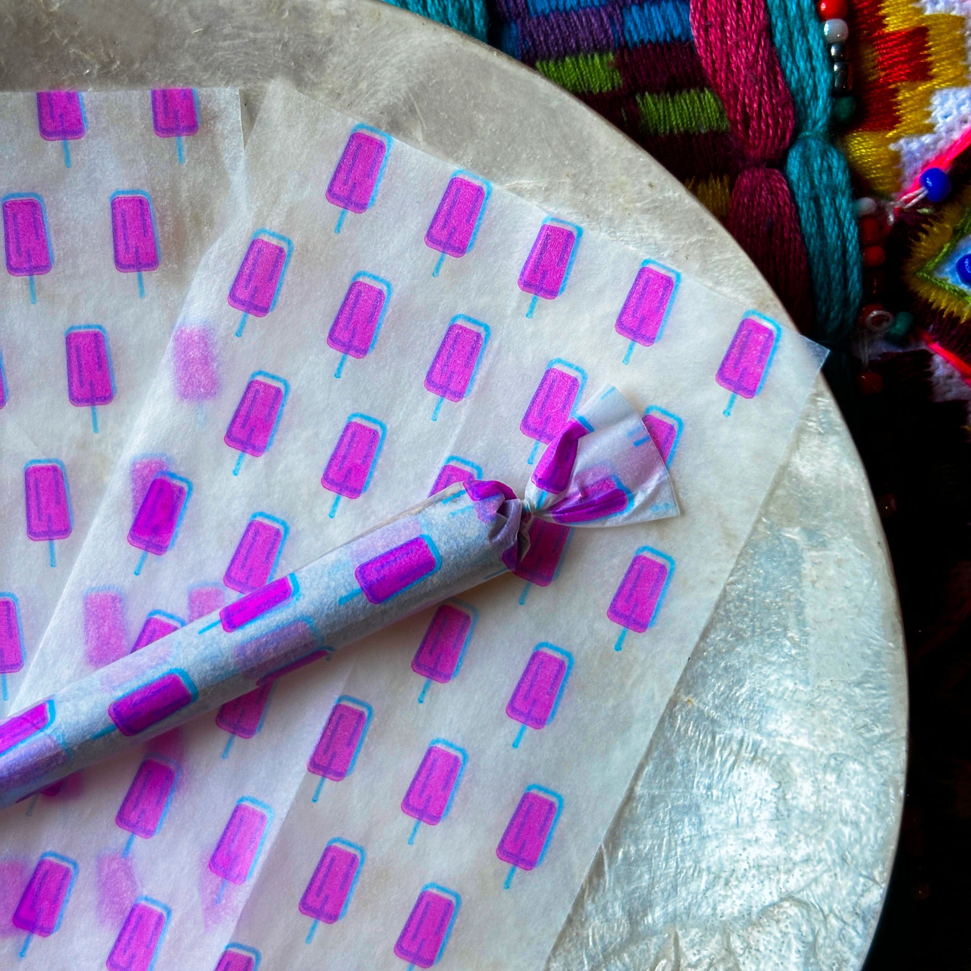 Treat yourself to our super cute popsicle papers! The Chick Lick Papers feature bright magenta popsicles outlined in bright blue.