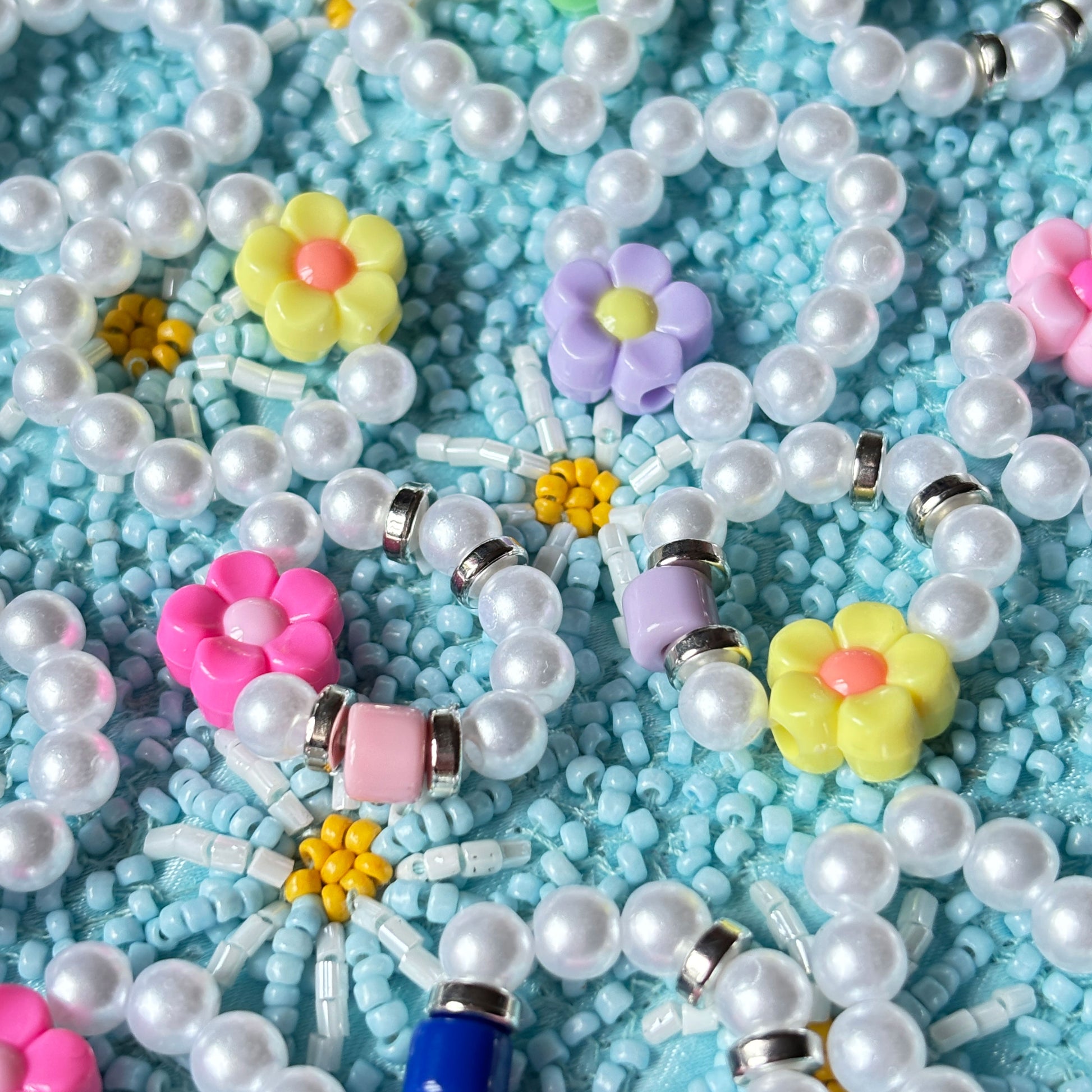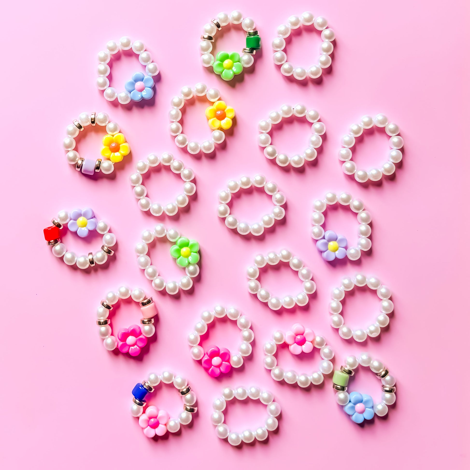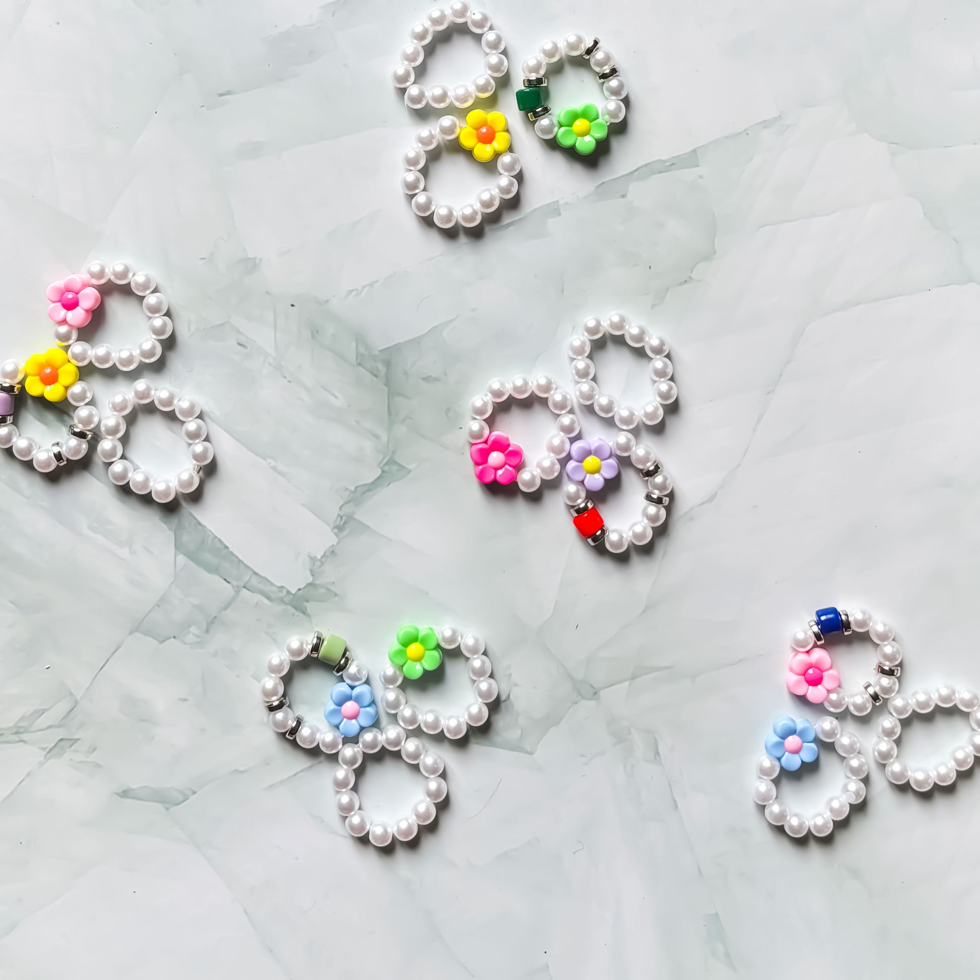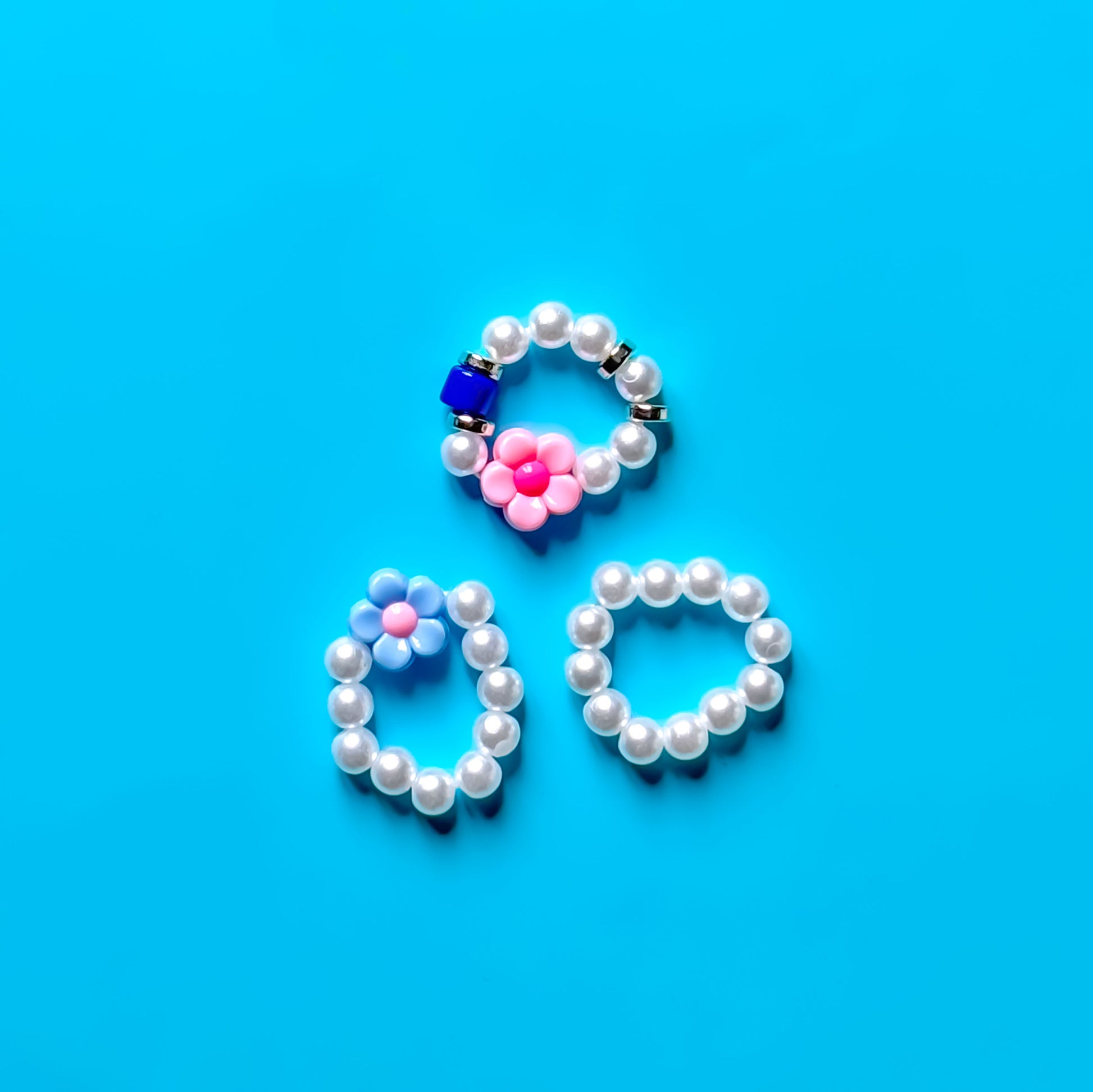 These floral pearl rings are the perfect way to add a little play to your summer fit. The Flower·ring Set comes with three elastic rings featuring small, round faux pearls with acrylic and brass accents. Each ring in the set of three is different. Available in five colorways: pink, blue, green, purple and yellow. Made with lightweight pearl, brass, ceramic and acrylic beads.