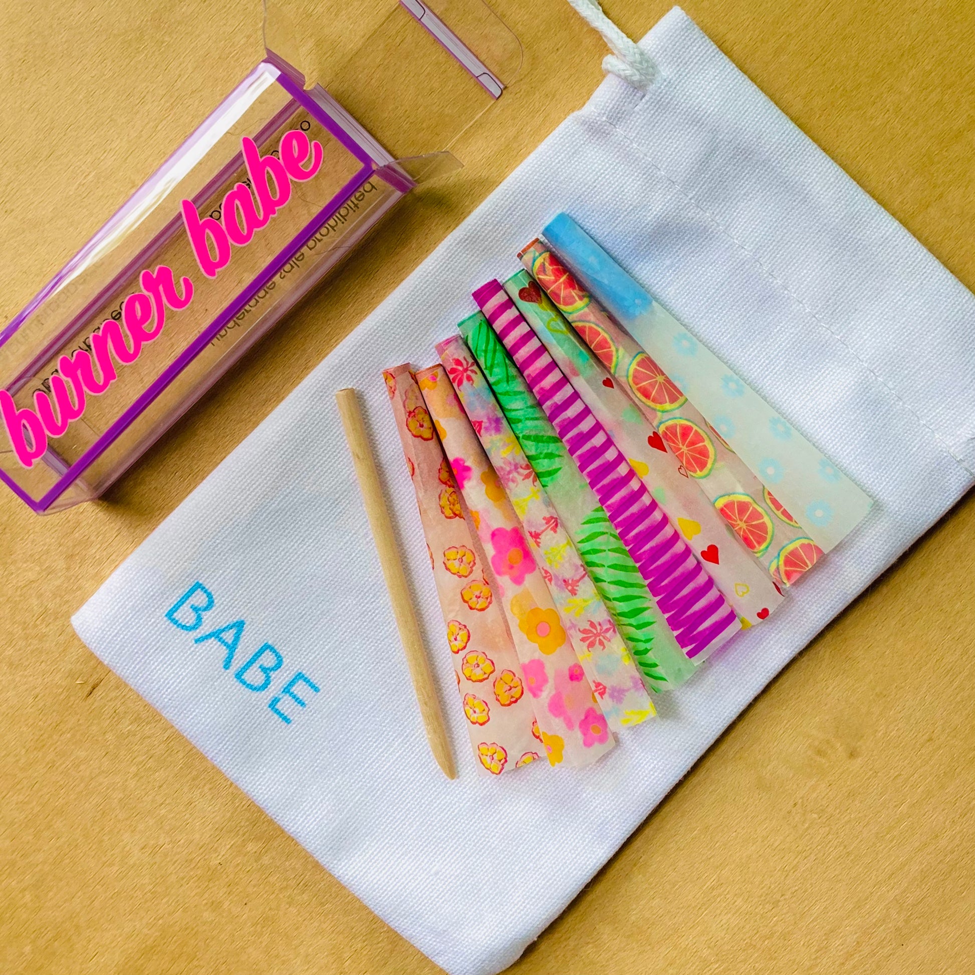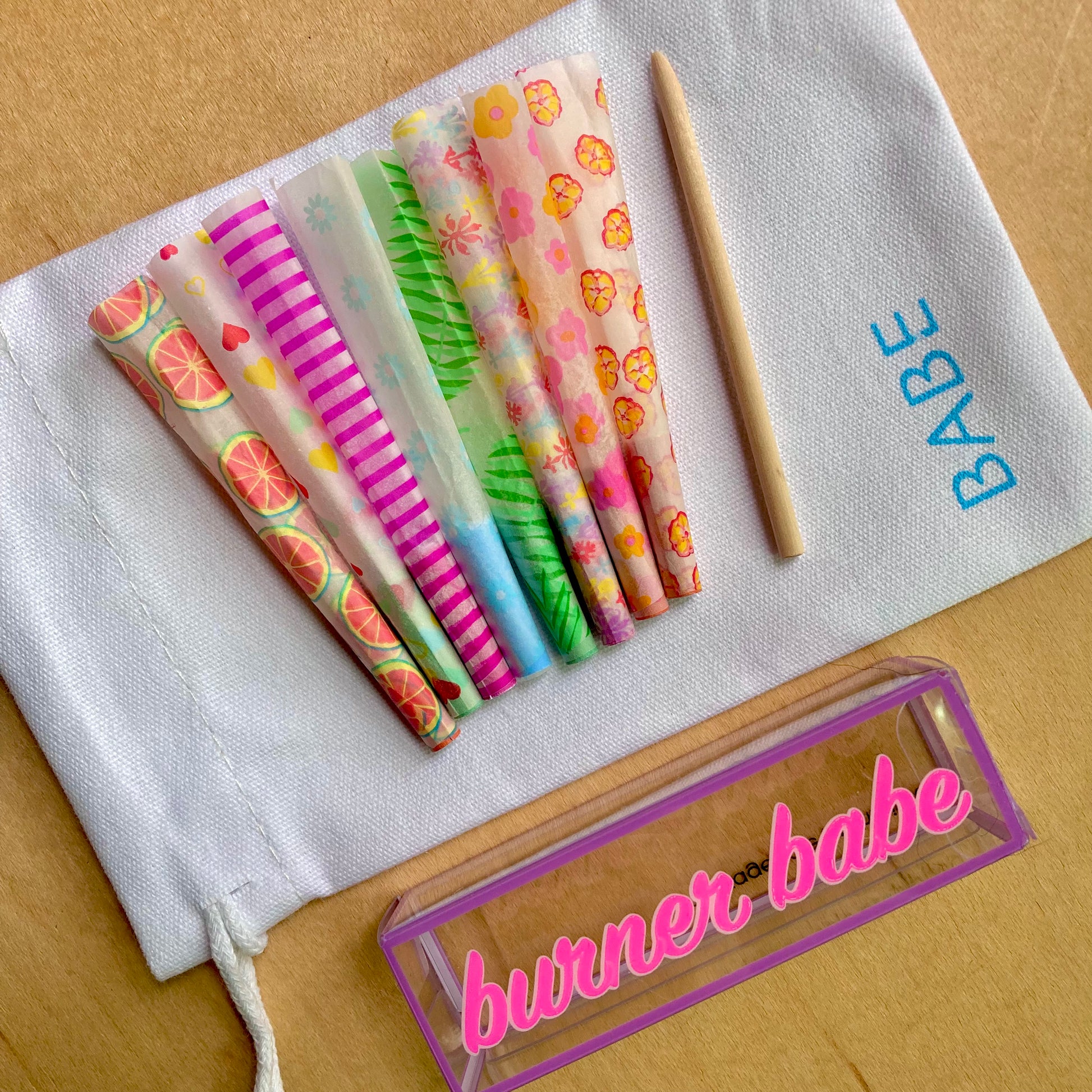 Each set of The Party Cones comes with a mix of 8 patterned cones, and a tamping tool for packing! Printed with plant-based inks.