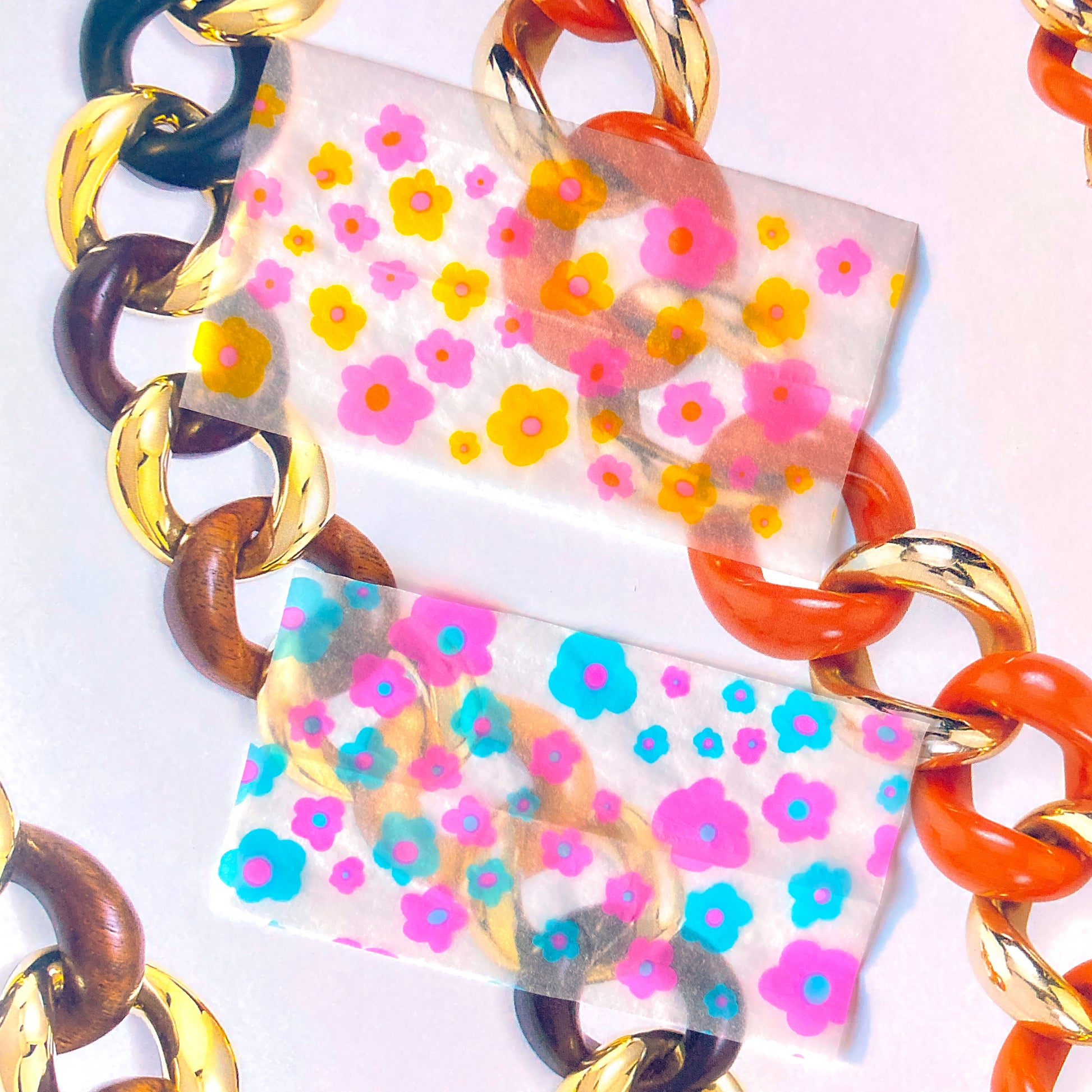 Adorned in big colorful florals, this set consists of one booklet each of The Wish and The Lucky patterns. Printed with vegan inks on rice paper.