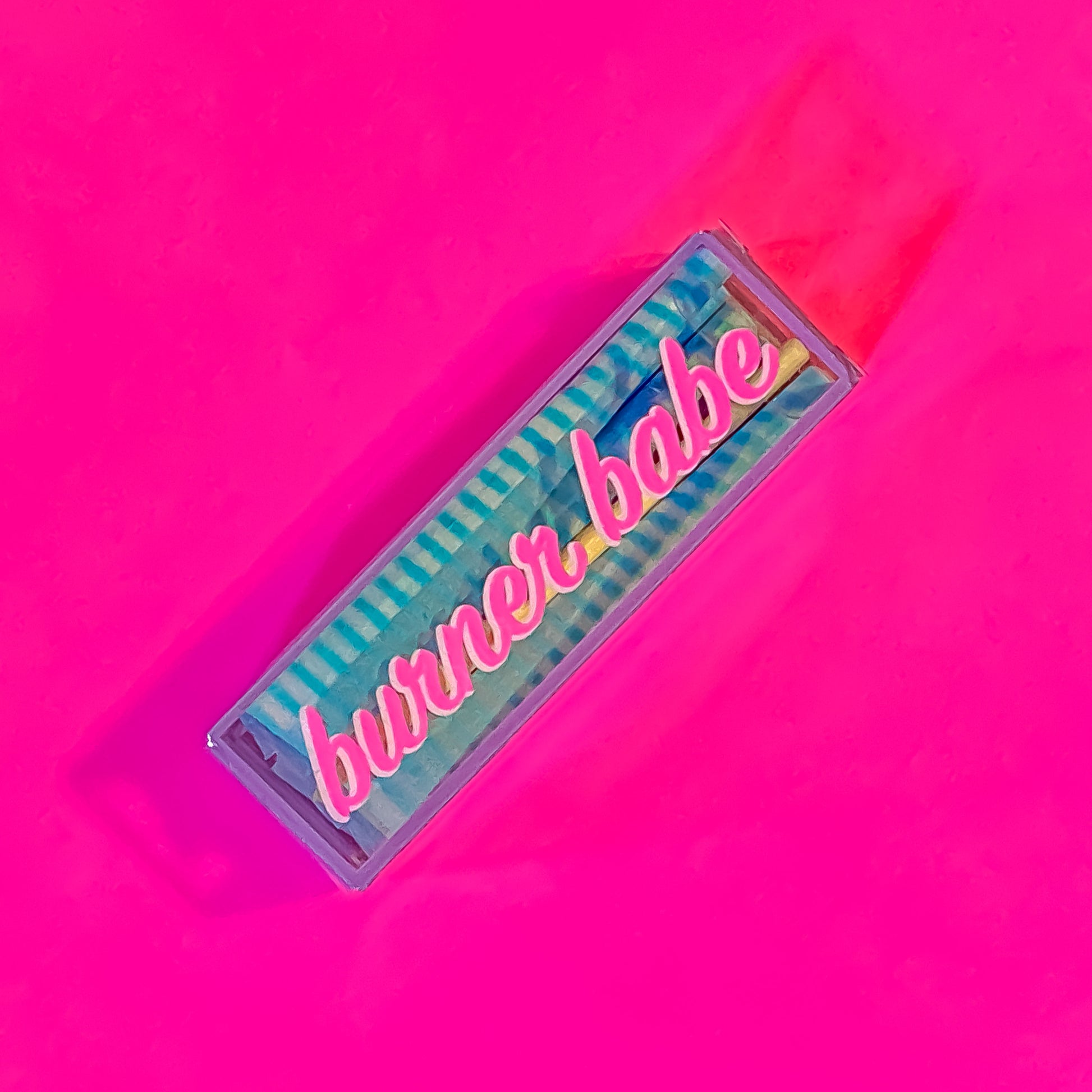 These cones are decorated with ribbons of bright blue. Printed with plant-based inks. Each pack consists of 8 striped cones and a tamping tool for packing.