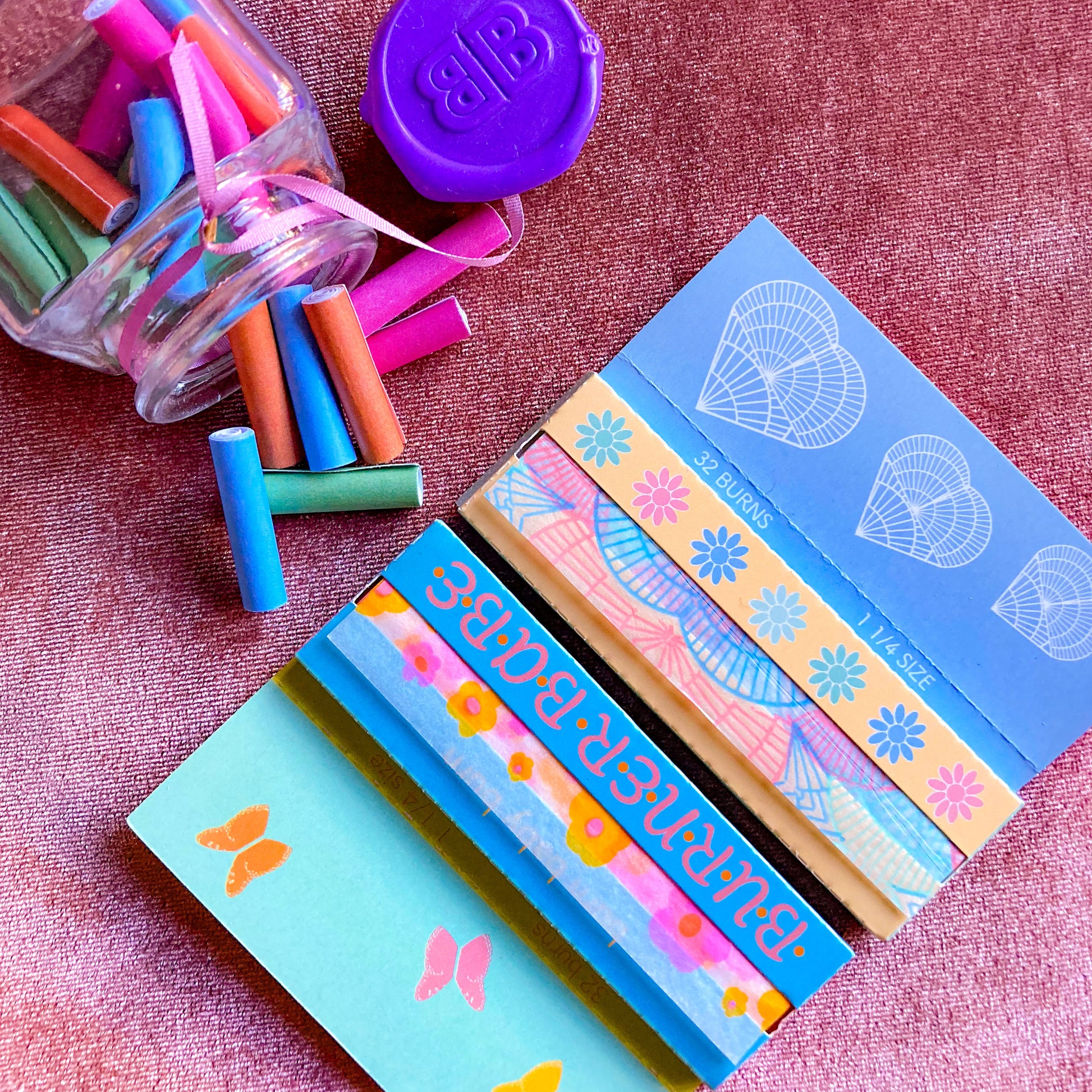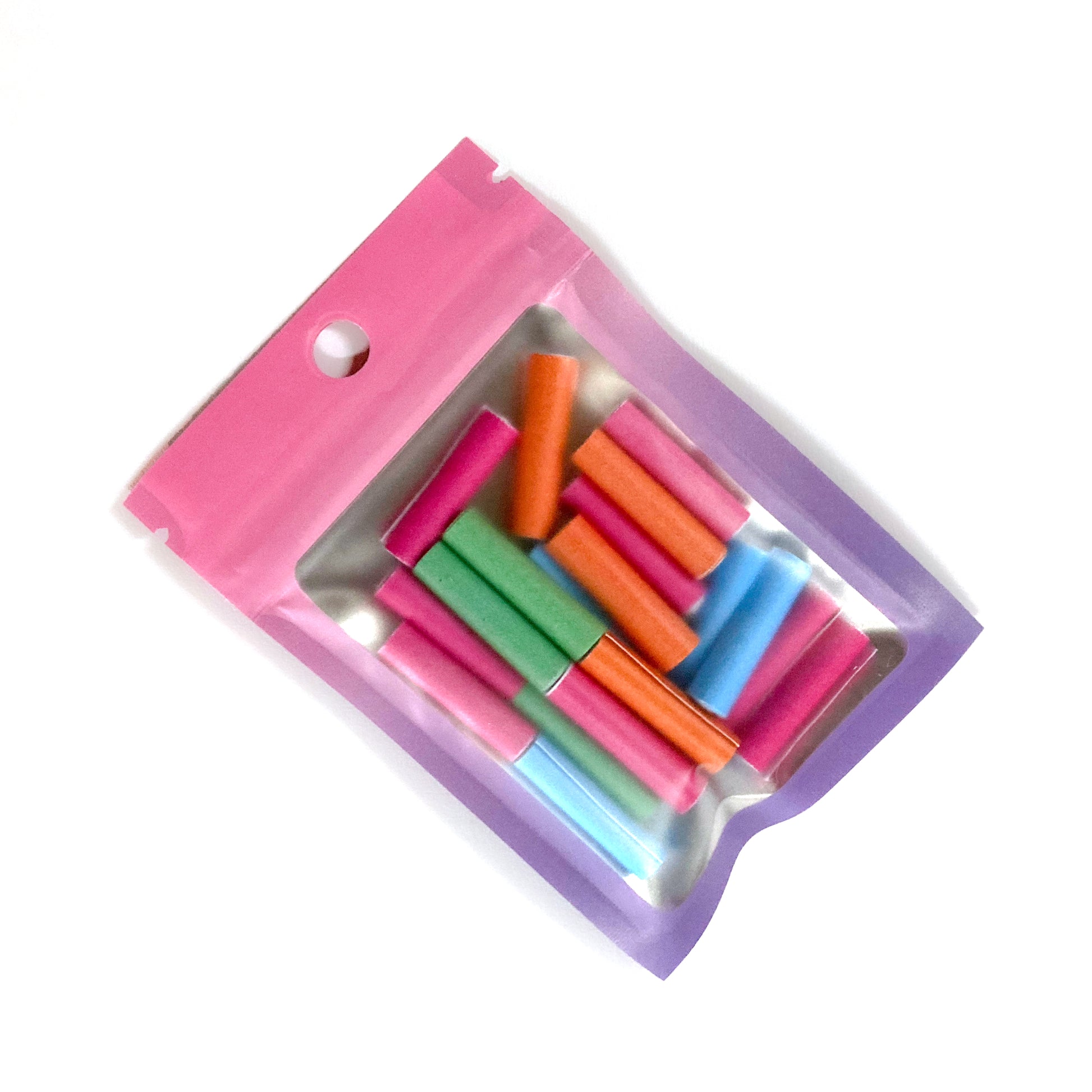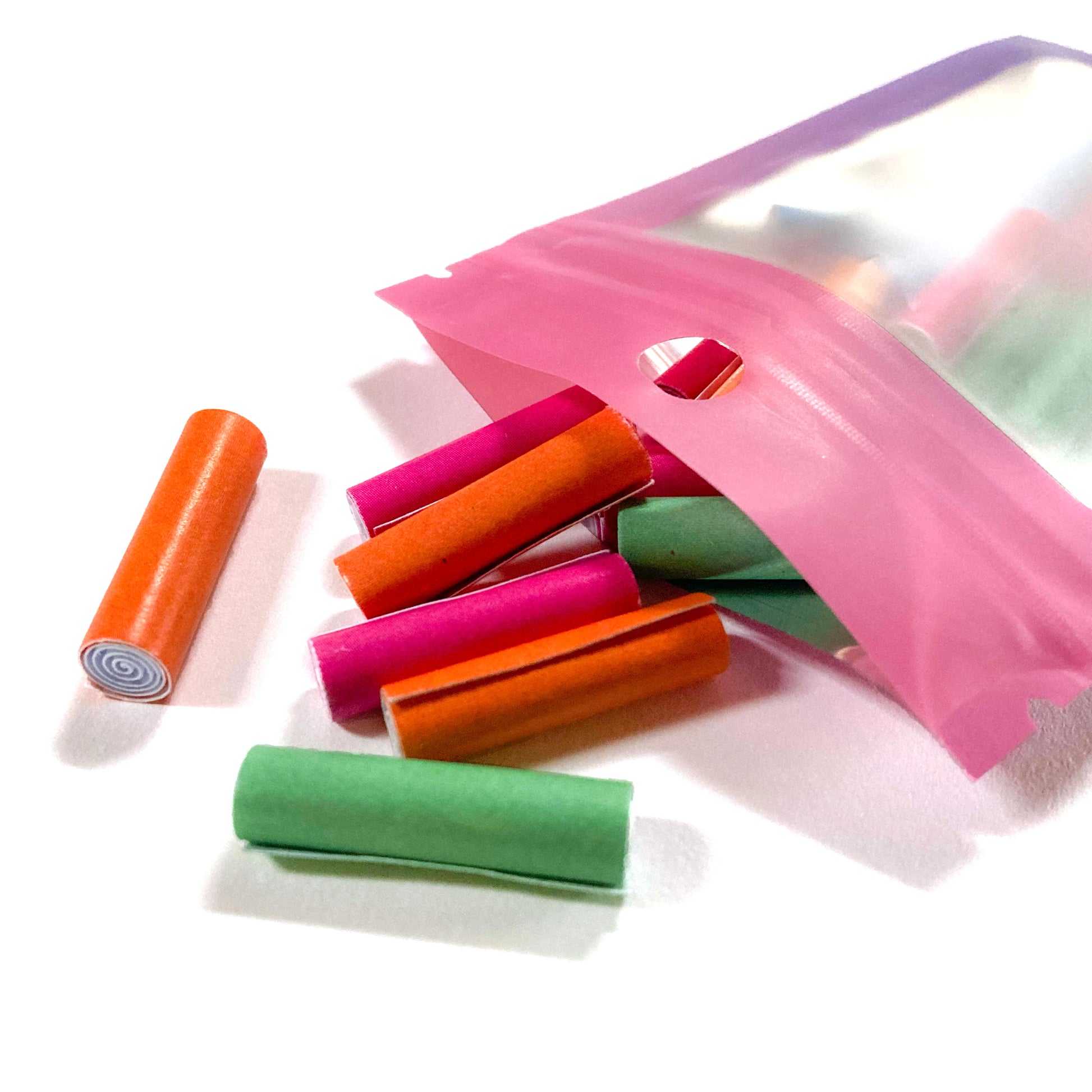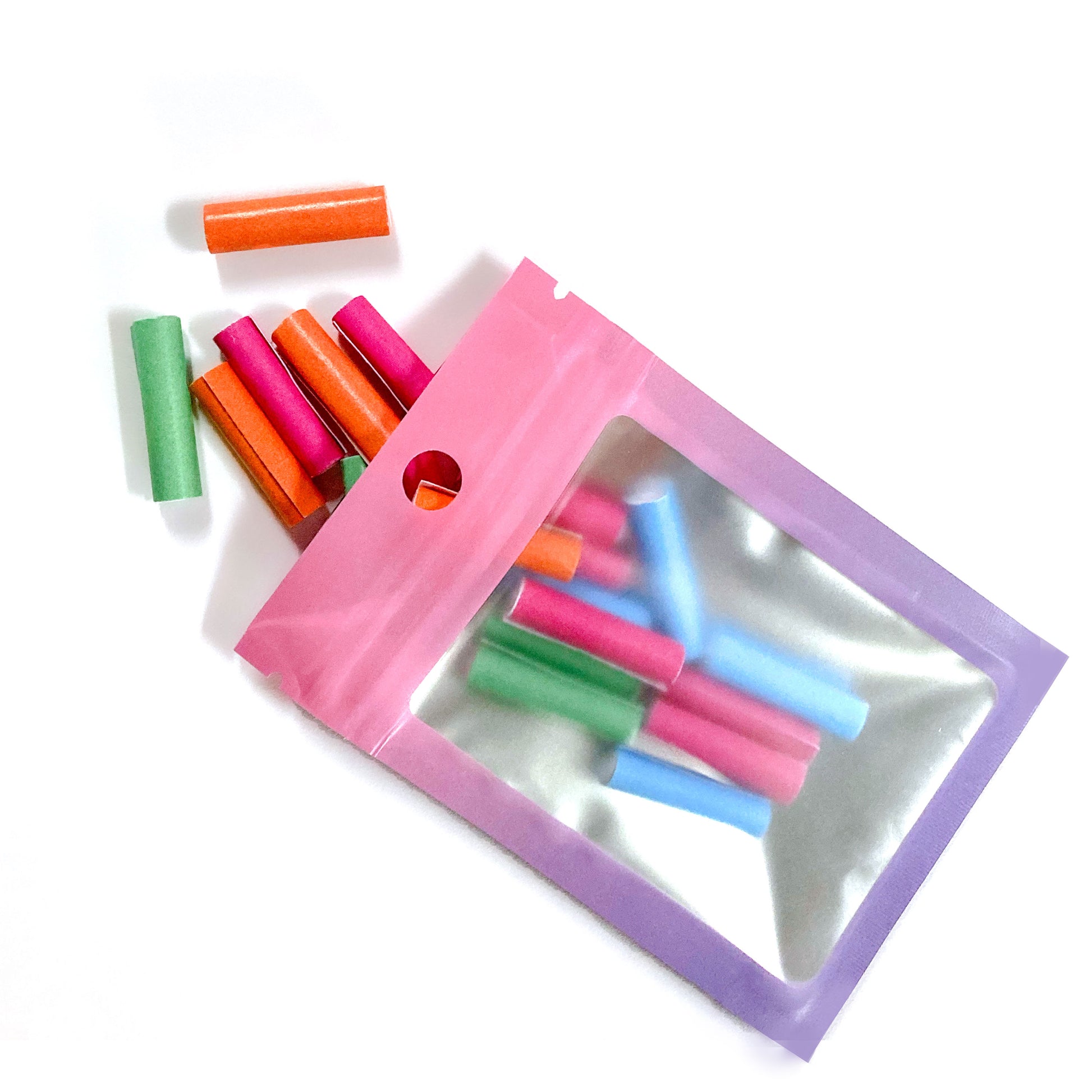 The Confetti Filters come in a set of 20 colorful crutches. Each pack of 20 has a mix of pink, blue, green and orange filters. They are the perfect complement to our designer papers--and they are the best way to add some style to ordinary papers. Hand-rolled in NYC, these filters are made from recycled paper.