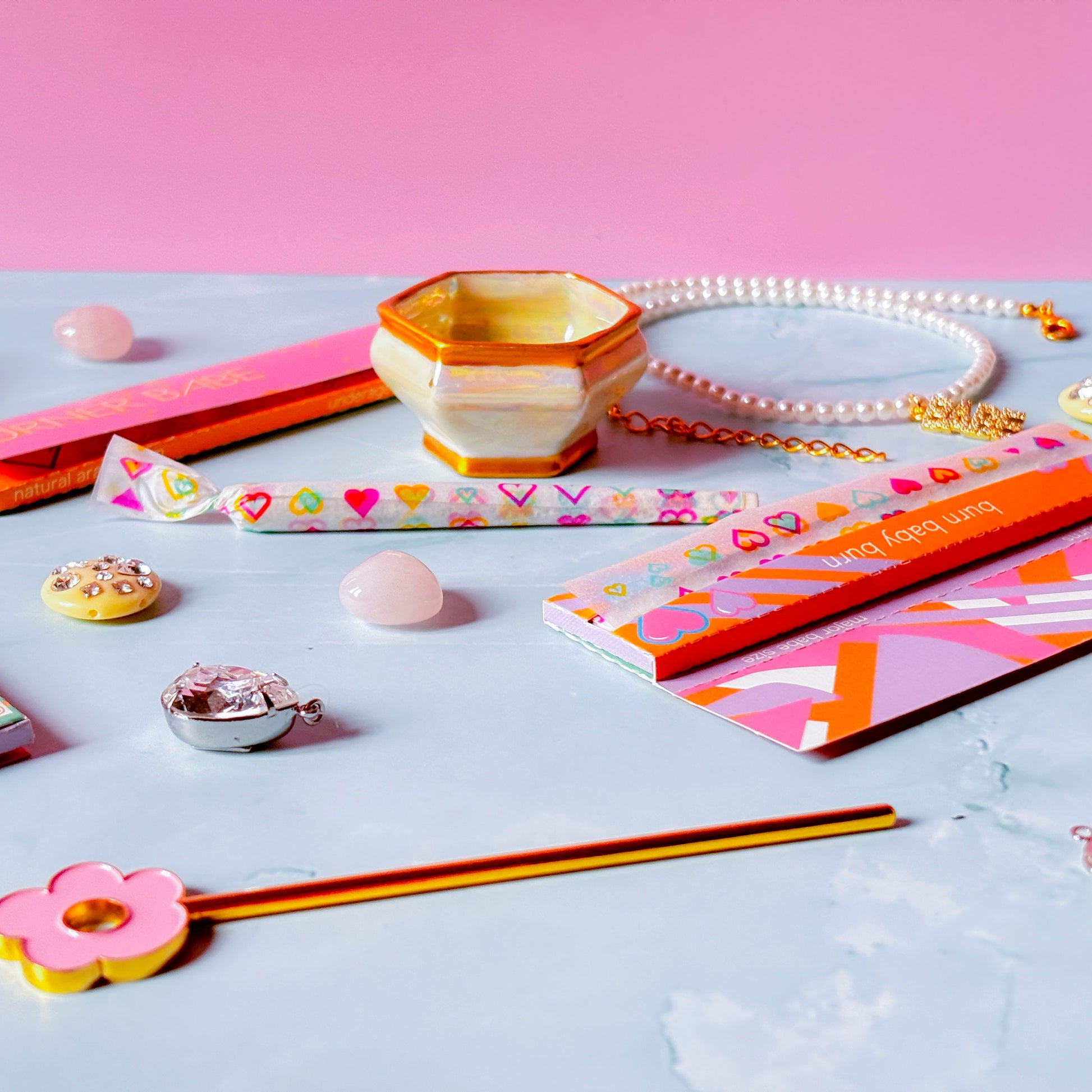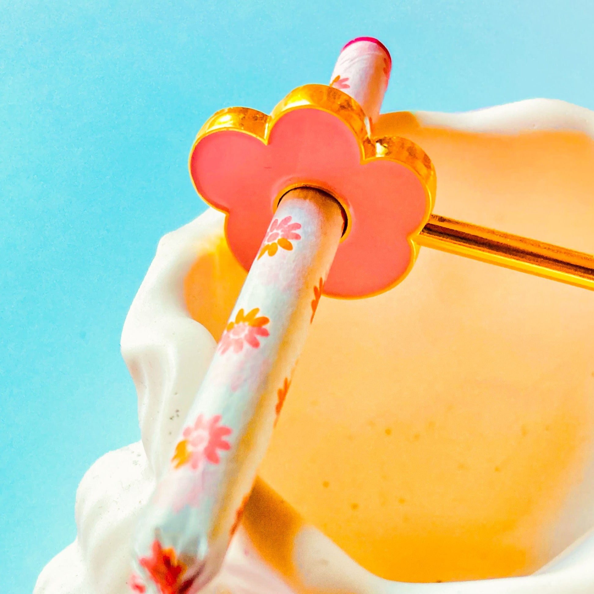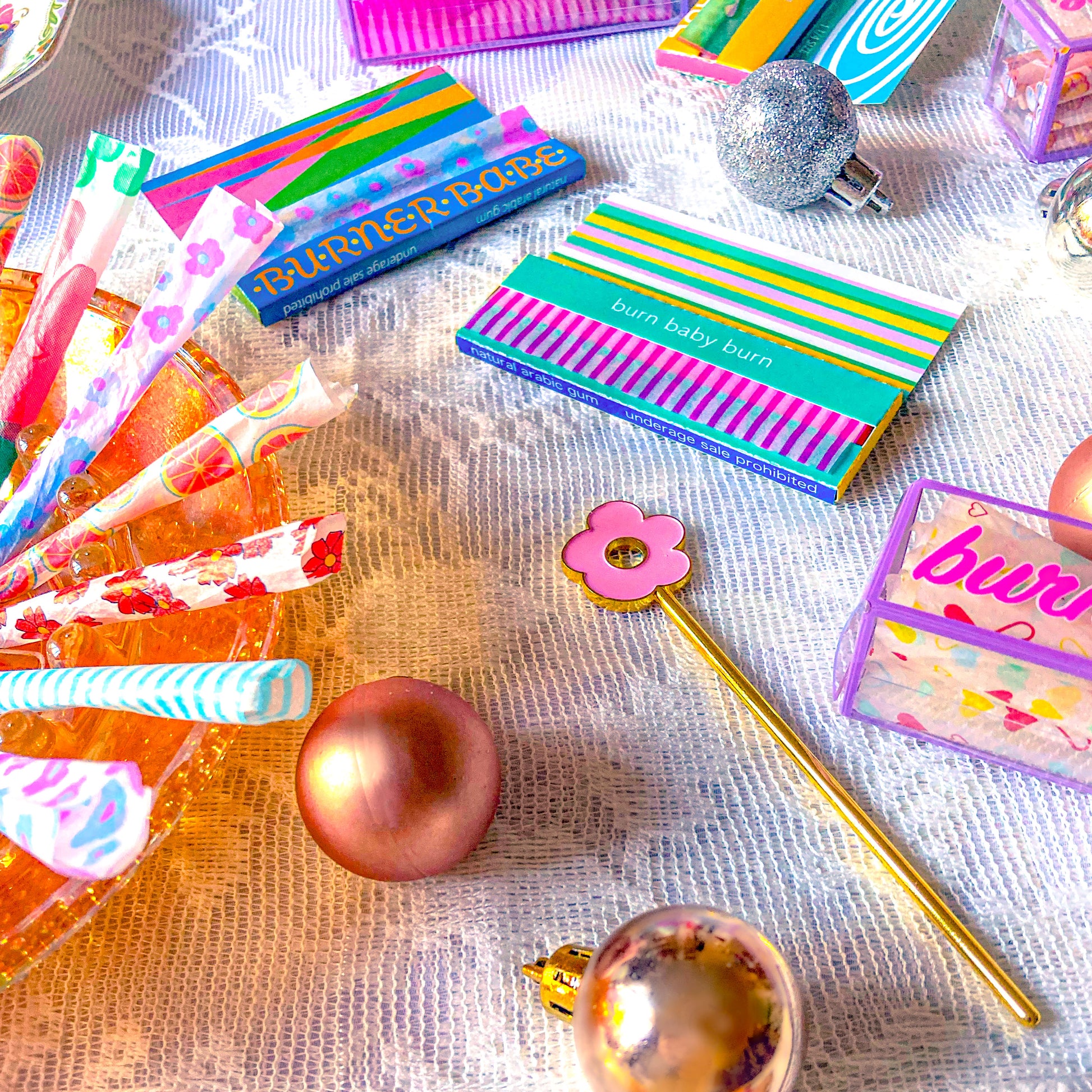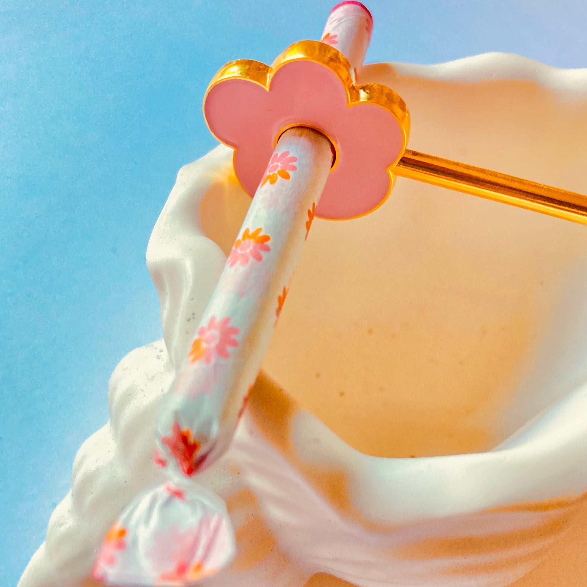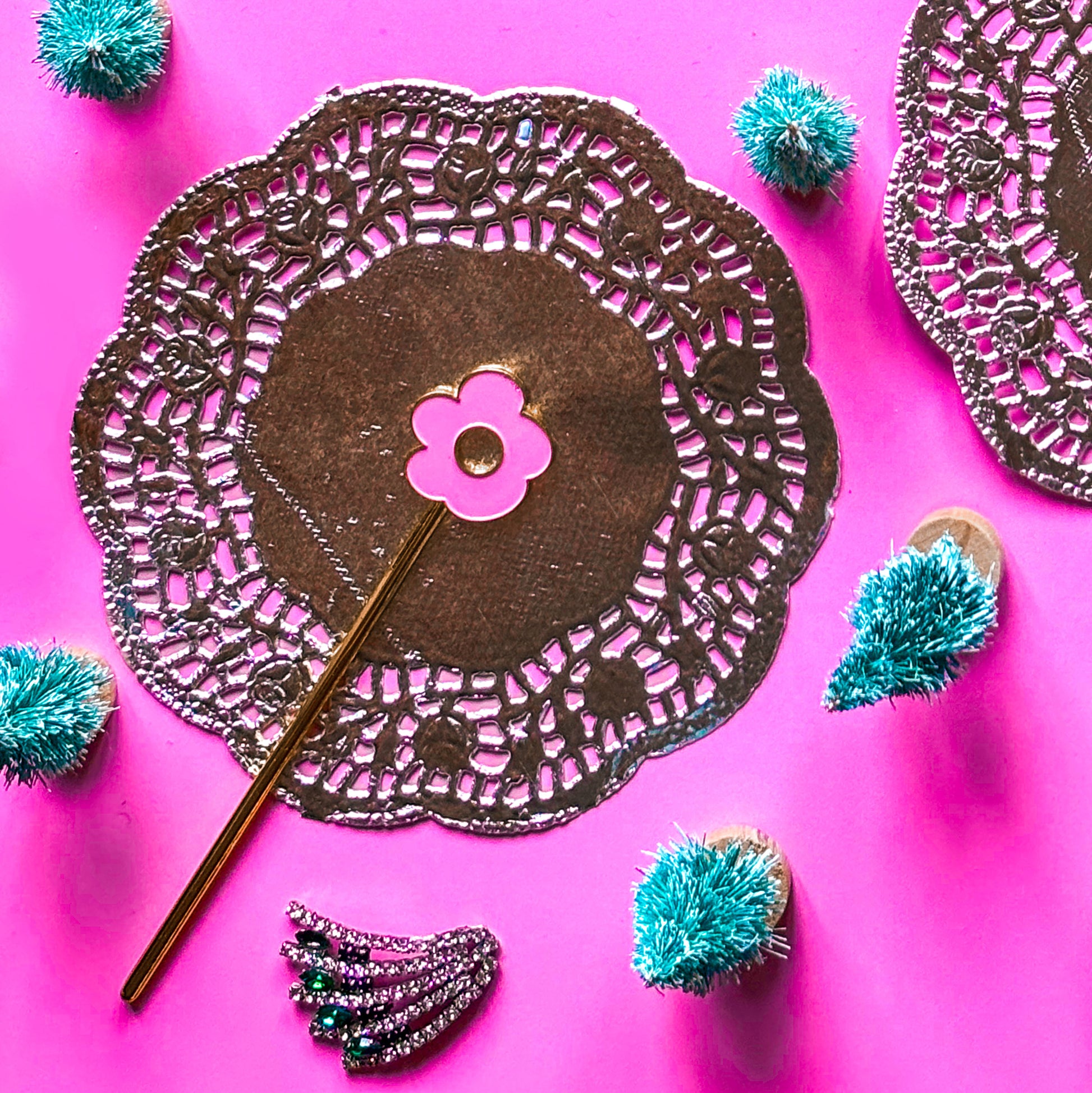 Puff puff pass just got a whole lot chicer. Slide your J into the opening, light up and enjoy! Our J holders are the prettiest way to avoid burning your fingers š The Flower J Holder features a gold edged flower design atop a gold tone wand. The flower is polished with pink enamel on both sides.