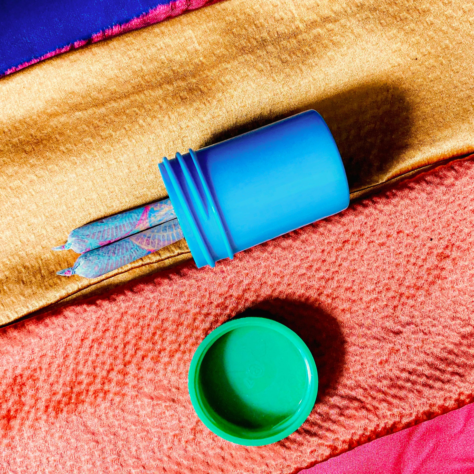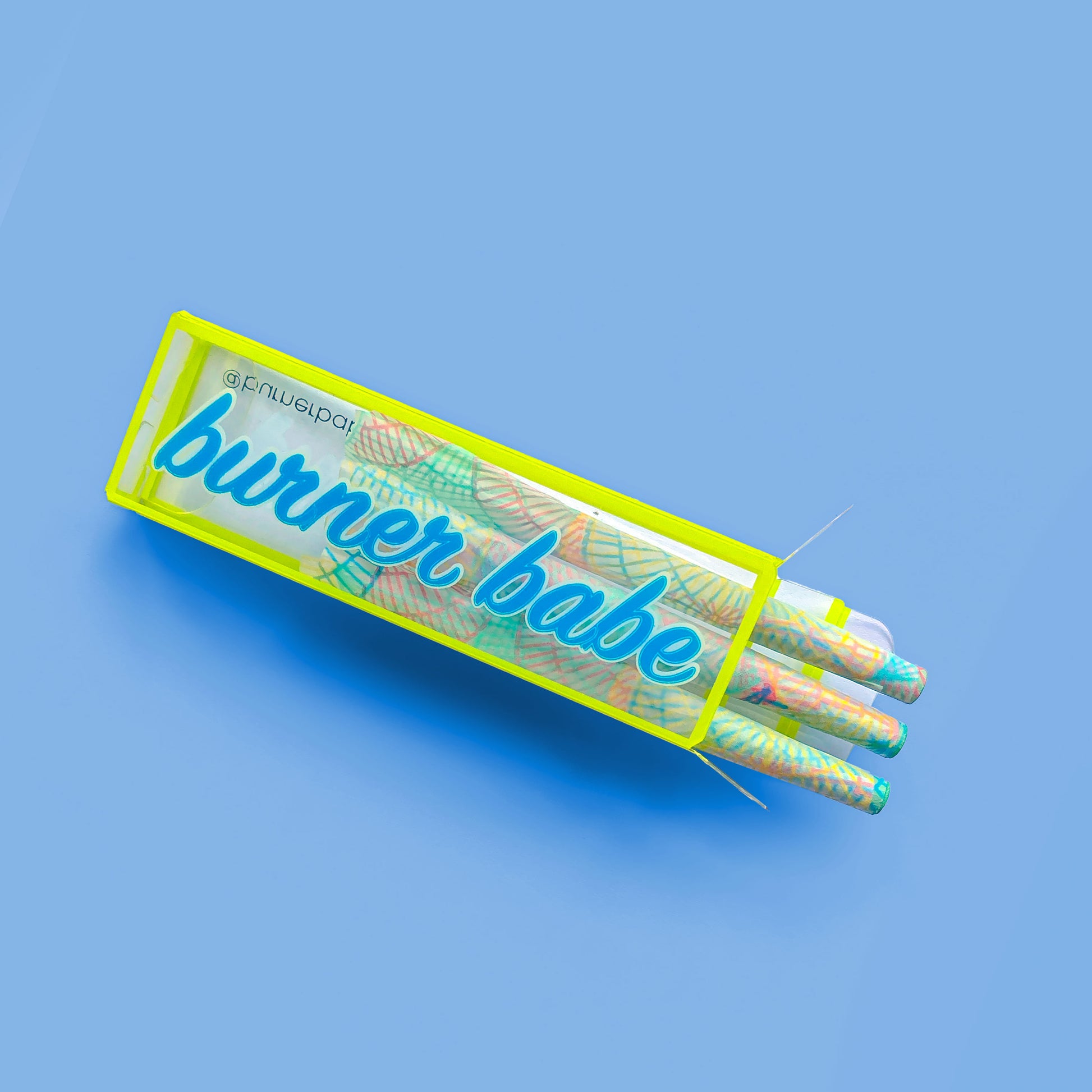 A bright spiral pattern swirls around The Heartbreaker Cones. Flecks of bright yellow, blue, turquoise and coral overlap to create a mosaic of color. The Heartbreaker Cones are vegan and made from rice paper. Each pack consists of 3 patterned cones.
