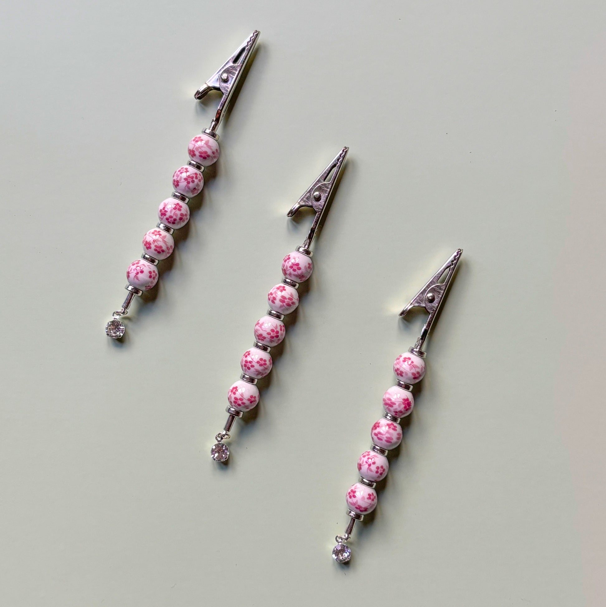 Upgrade your sesh with this vintage-inspired floral J holder 🩷 Adorned with pink and white floral beads, this J clip is handmade in NYC. Made with lightweight ceramic beads and silver-plated brass findings, the Jasmine J Clip is finished with a small crystal drop.