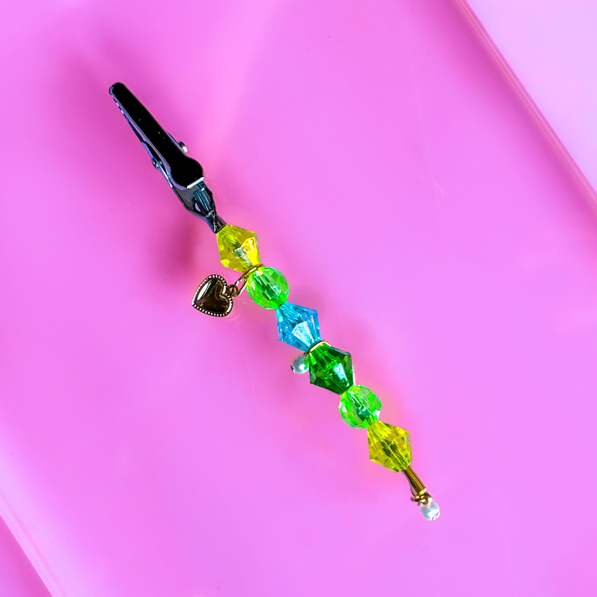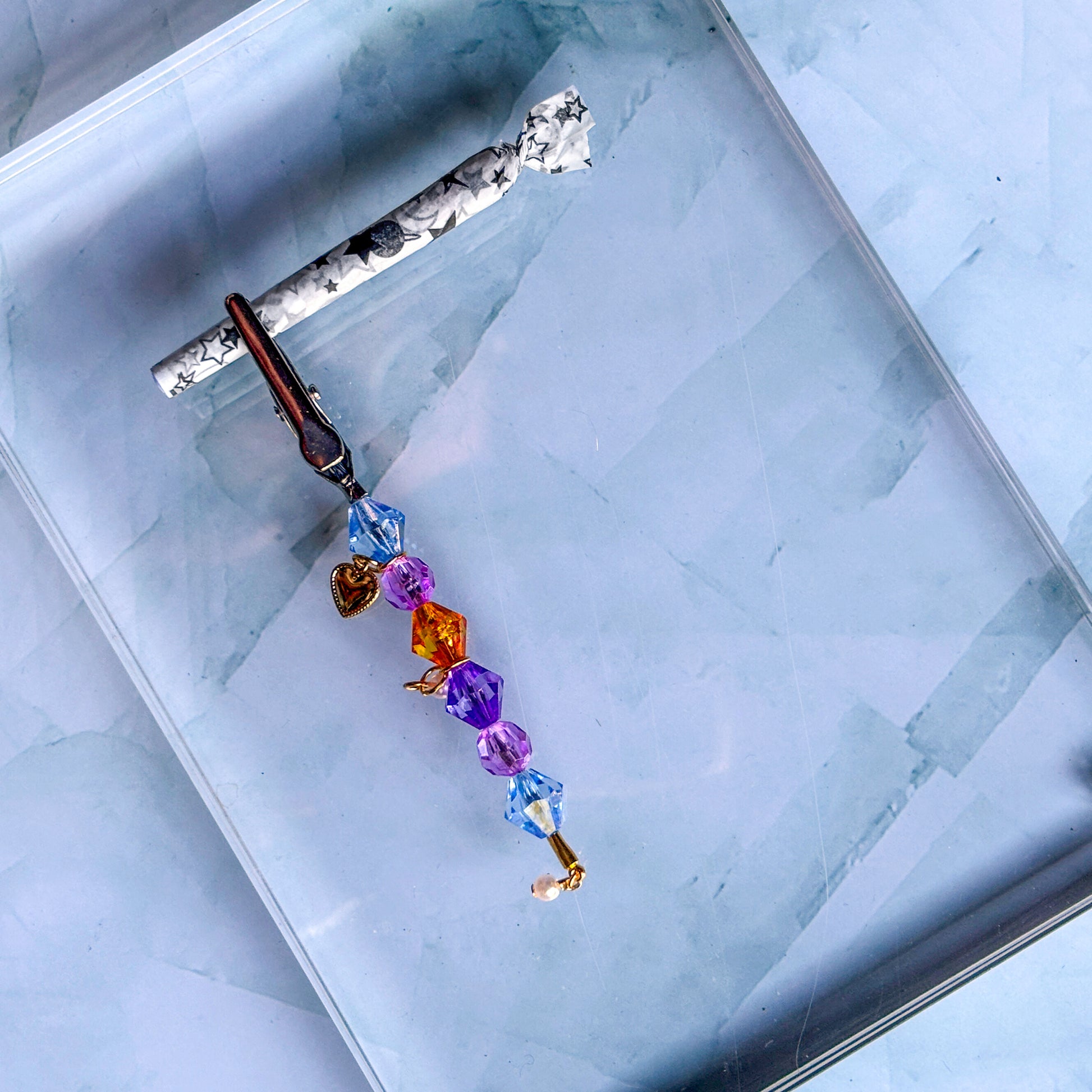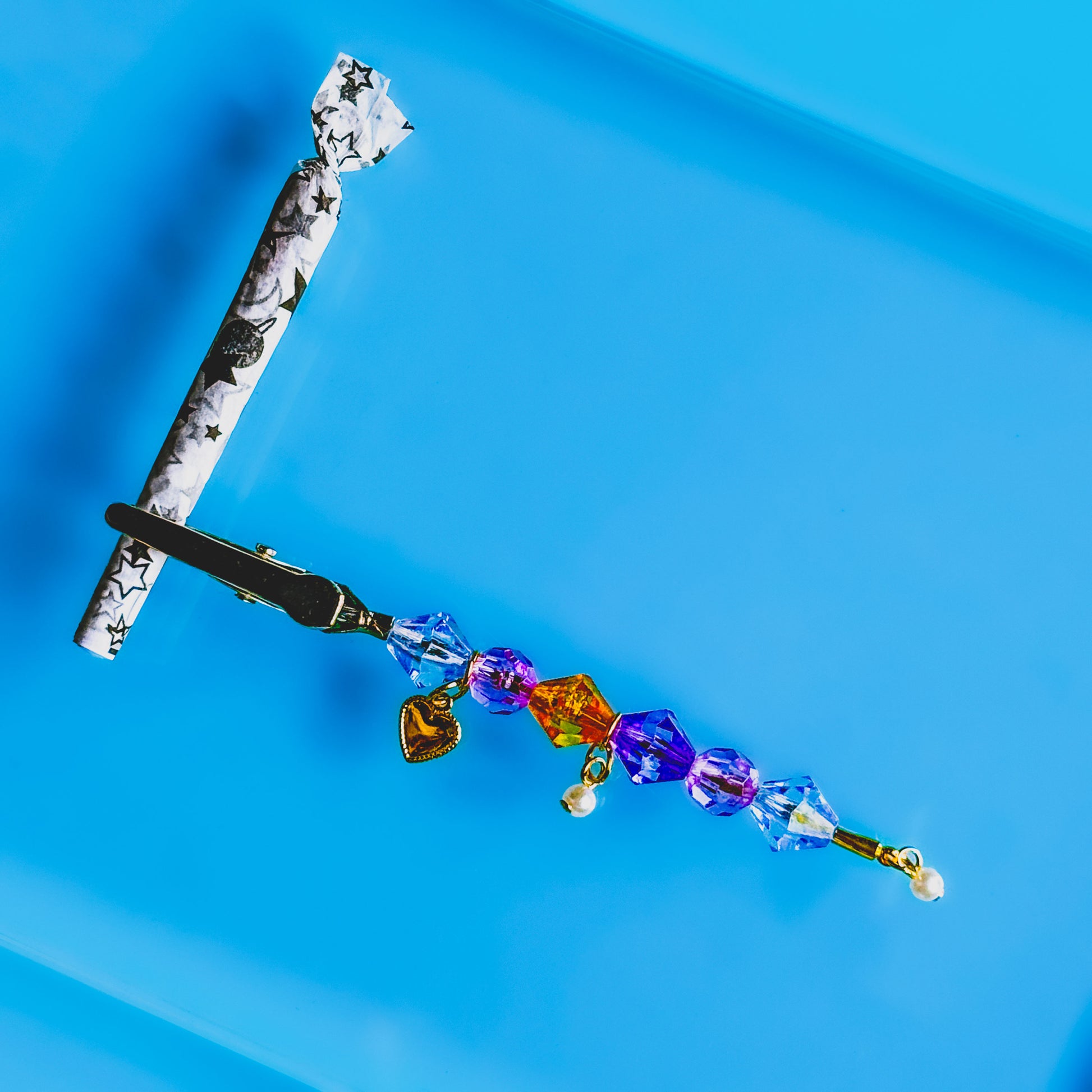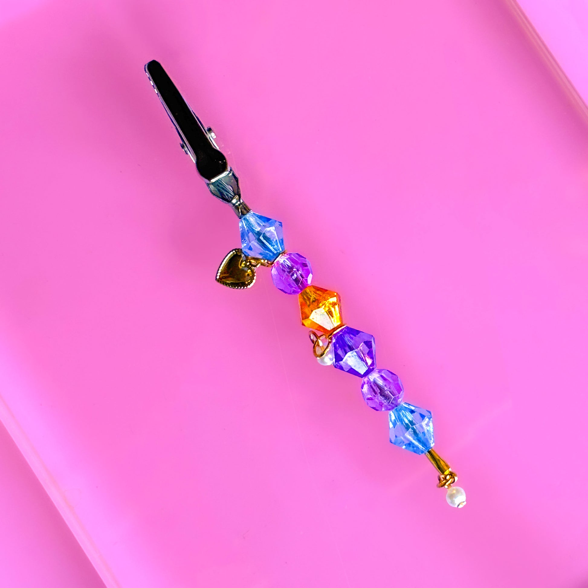 Add a little sparkle to your sesh with this gemstone and charm adorned J clip 💙 Stacked with colorful glass beads and playful charms, this delicate J clip is handmade in NYC.