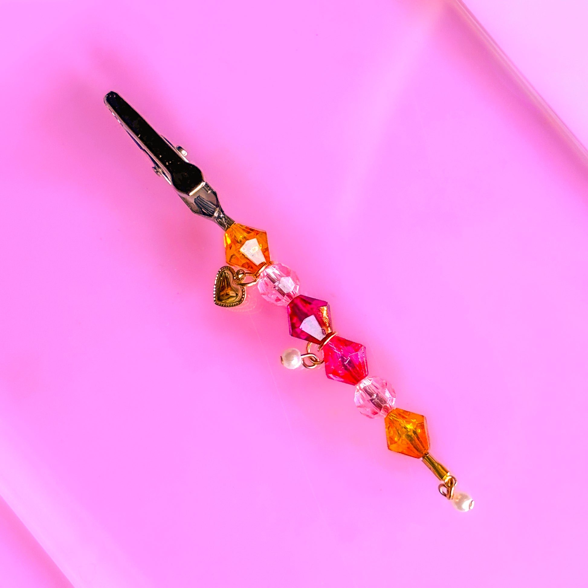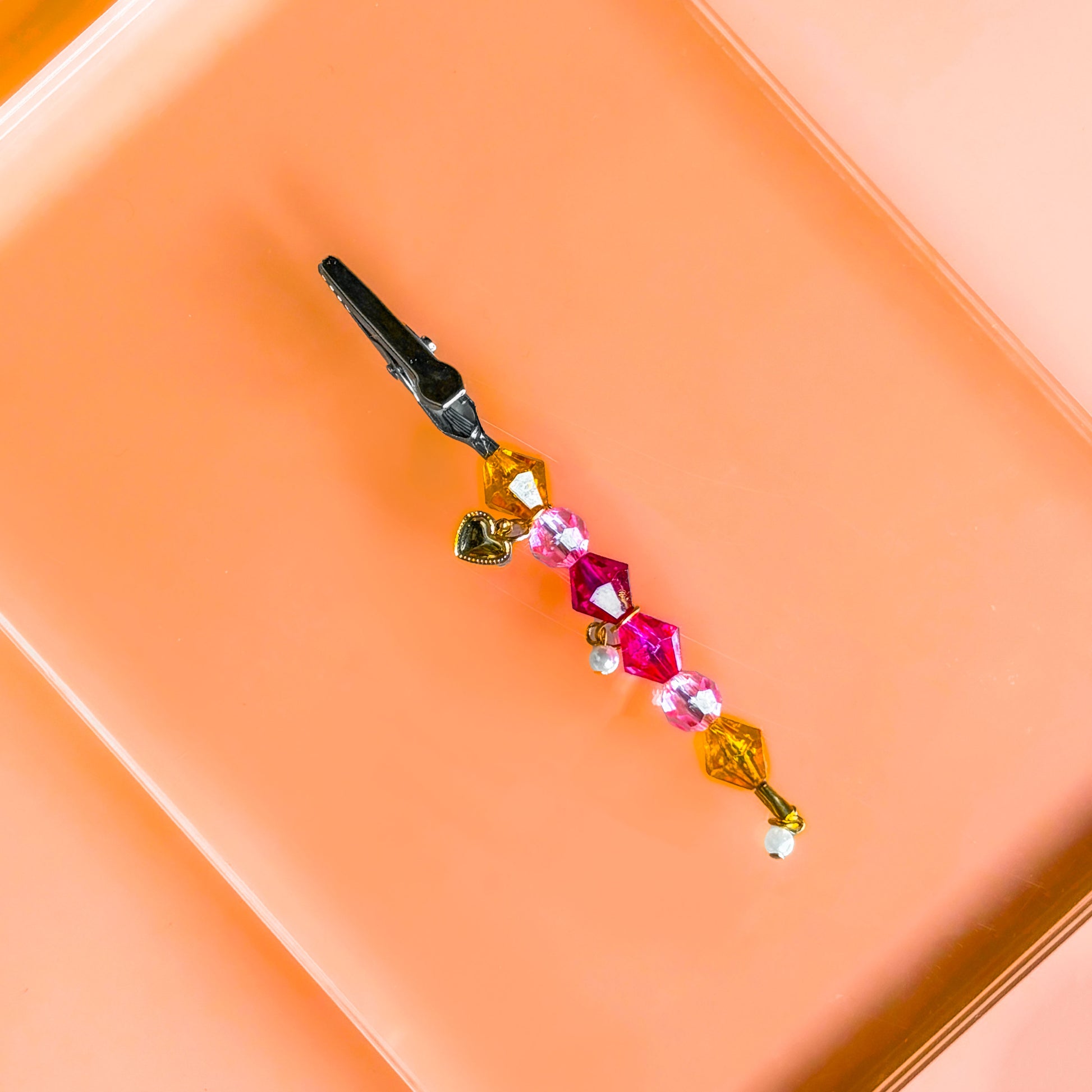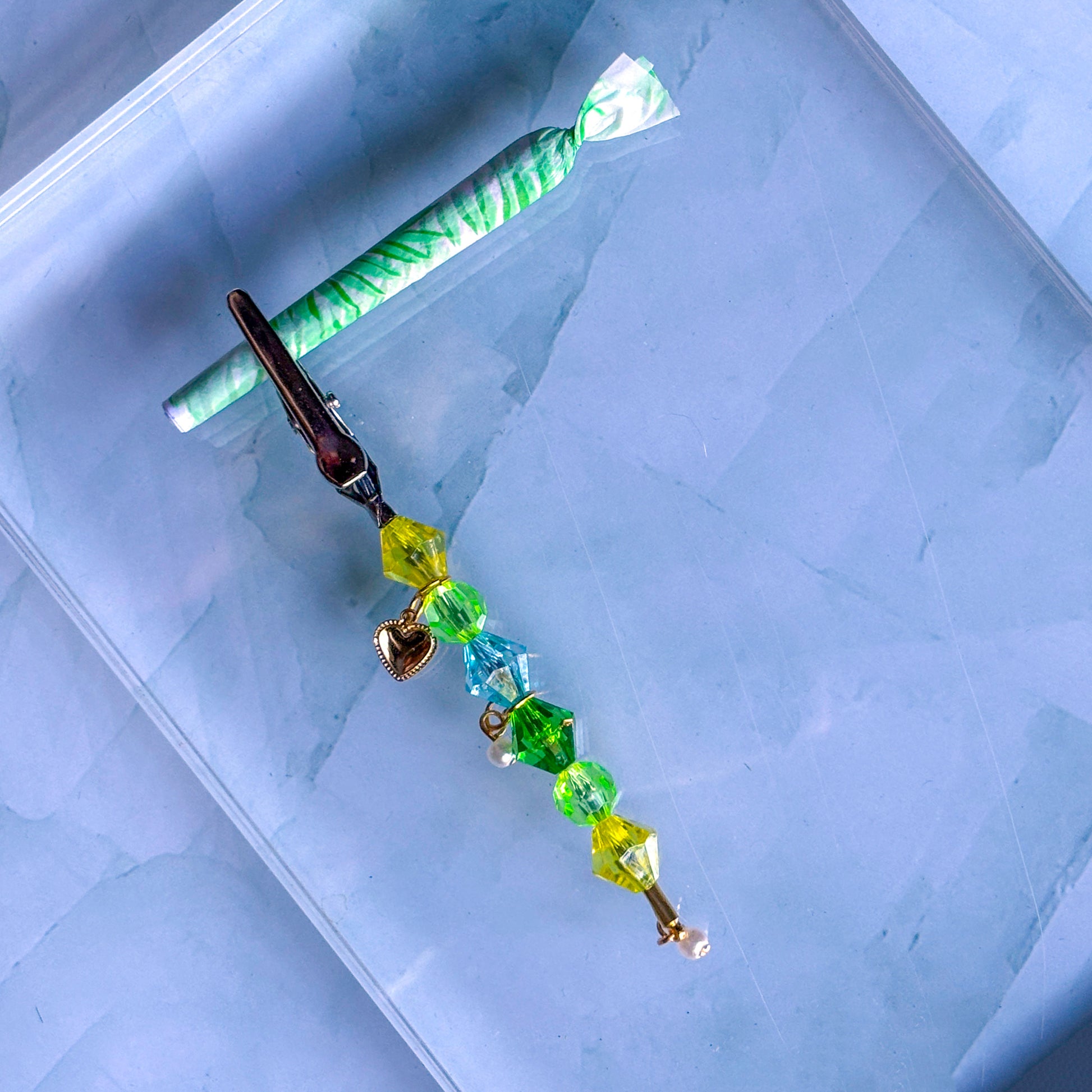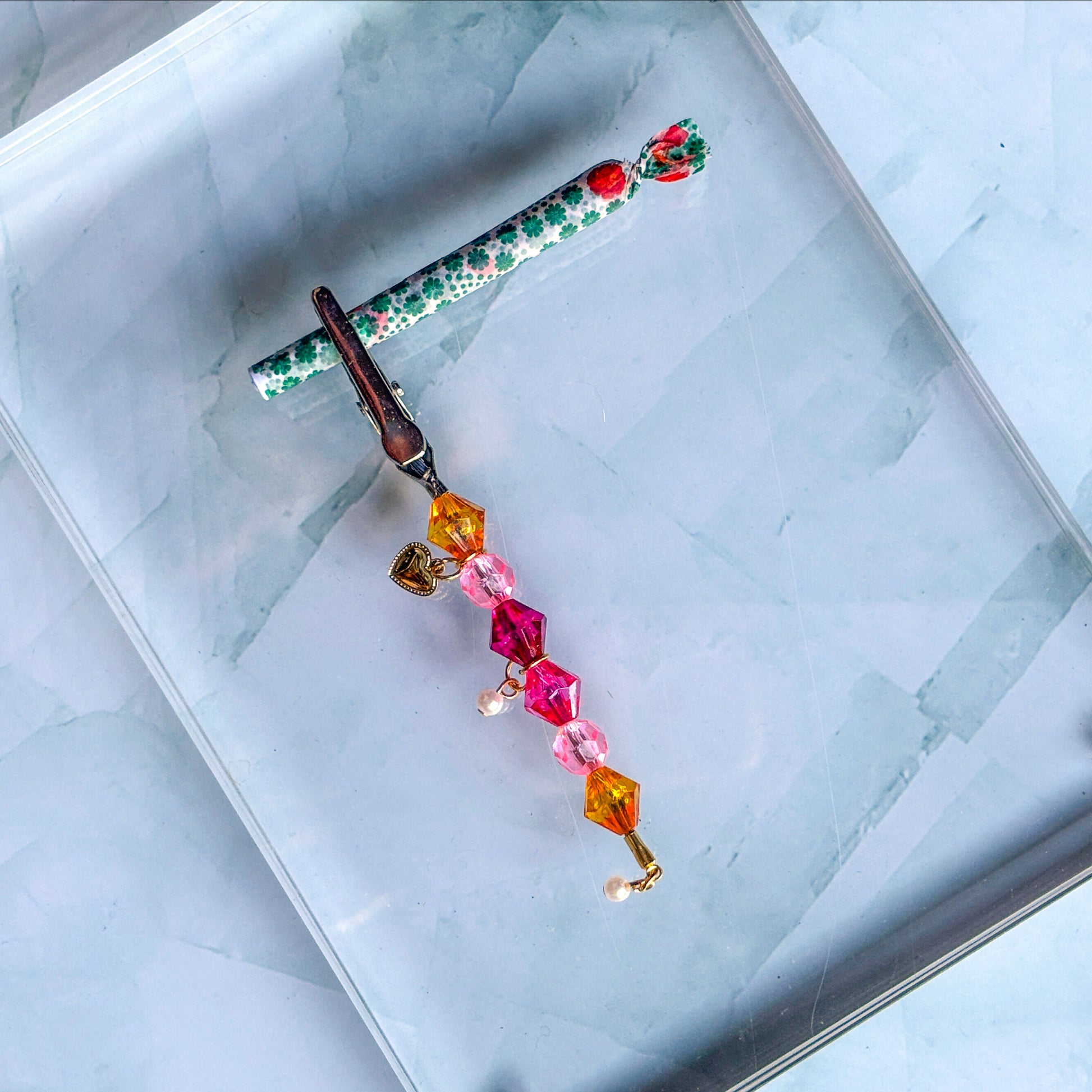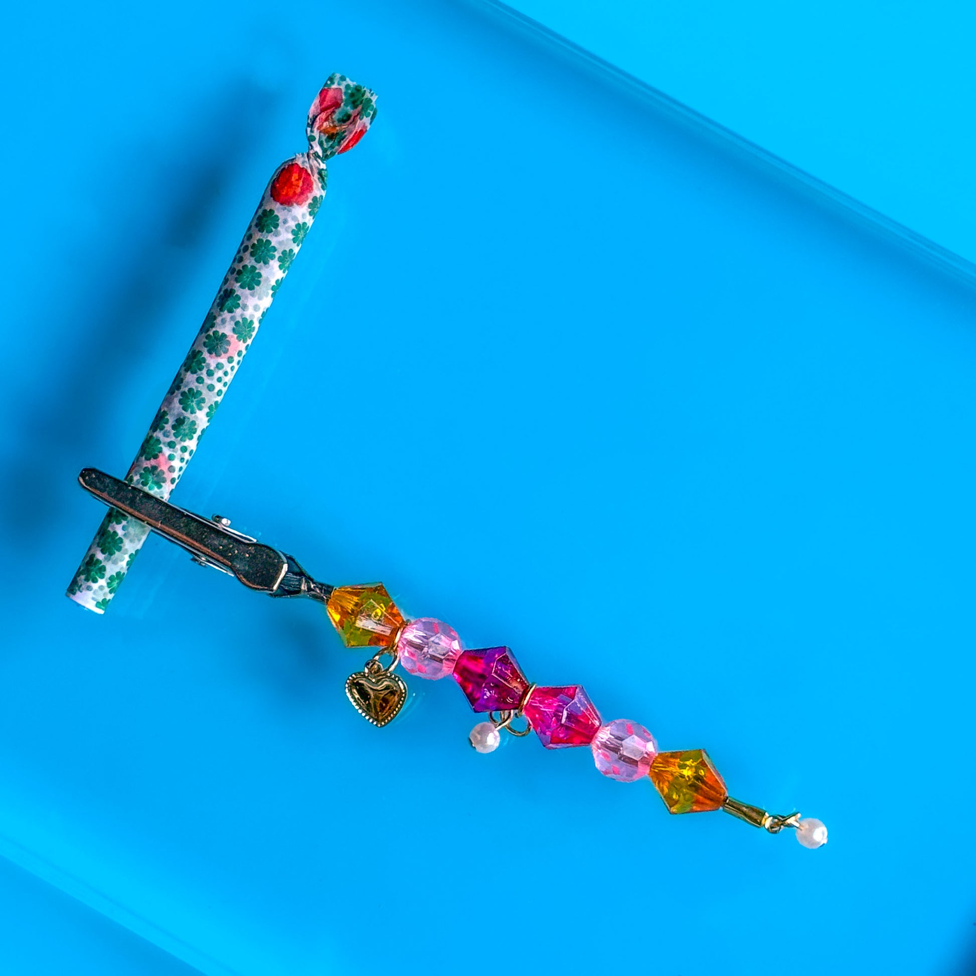 Add a little sparkle to your sesh with this gemstone and charm adorned J clip 💙 Stacked with colorful glass beads and playful charms, this delicate J clip is handmade in NYC.