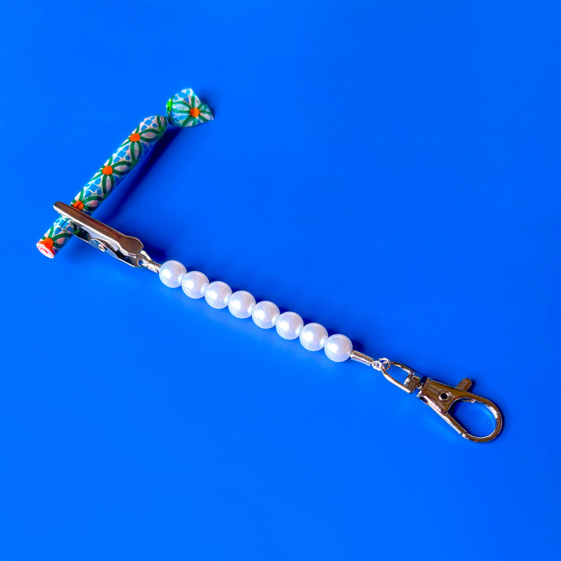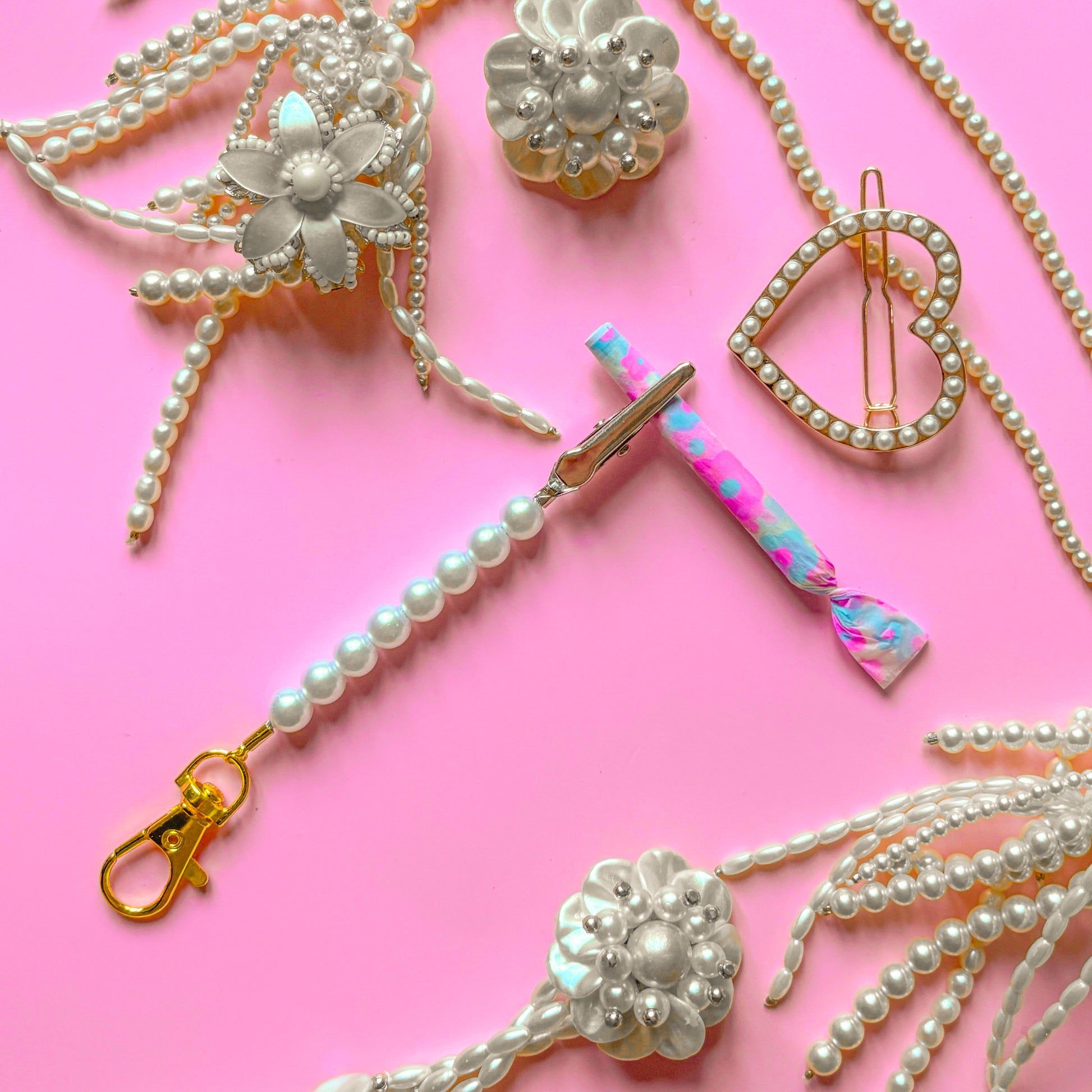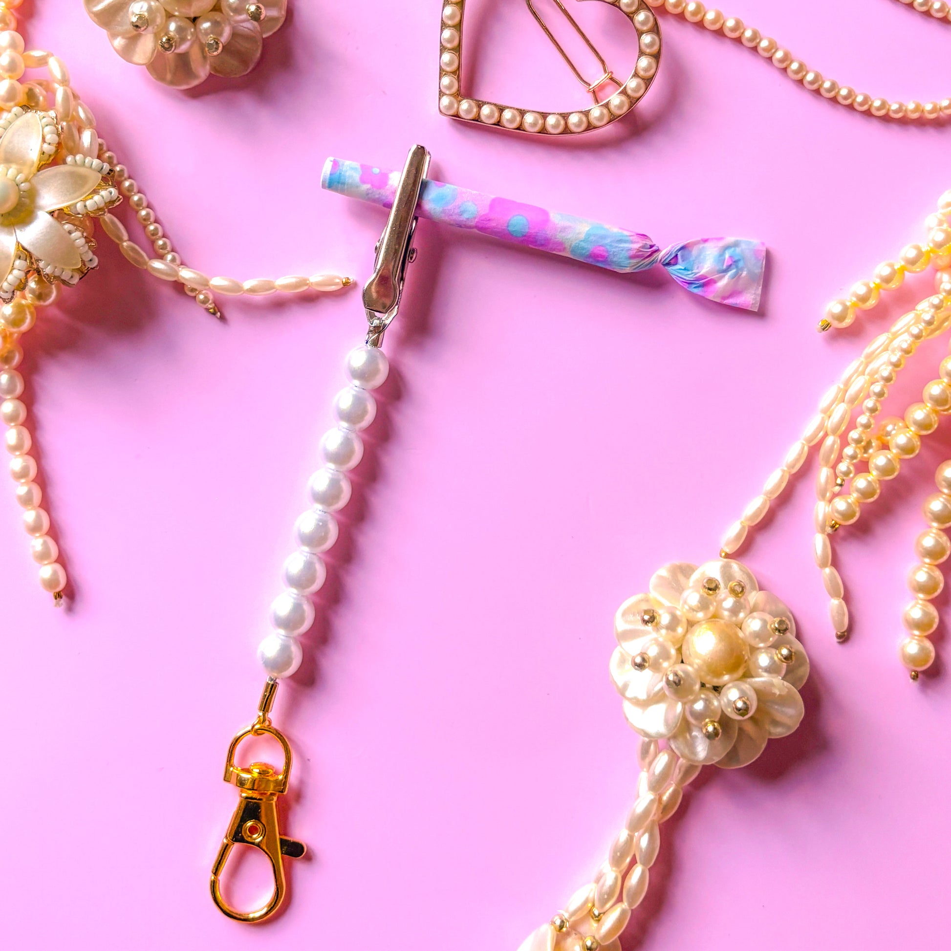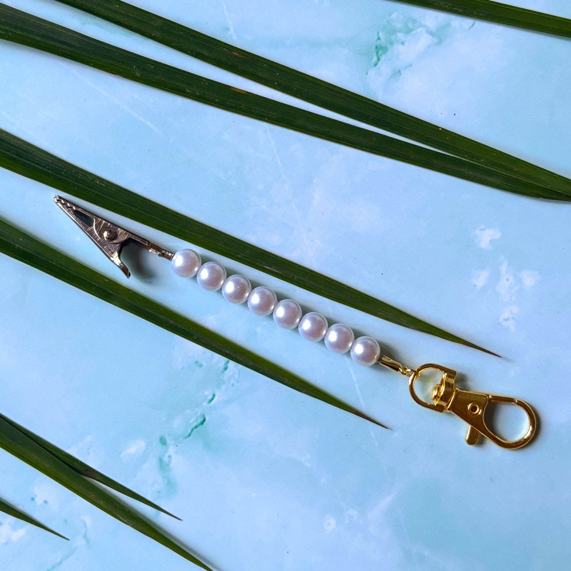 A variation of our bestselling Little Pearl J Clip, this j holder is attached to a swivel clip so you can take it on the go! Attach it to your belt loop, bag or keys to instantly elevate your look 🩷 Handmade with lightweight imitation pearl and the option of gold or silver-plated swivel clip.