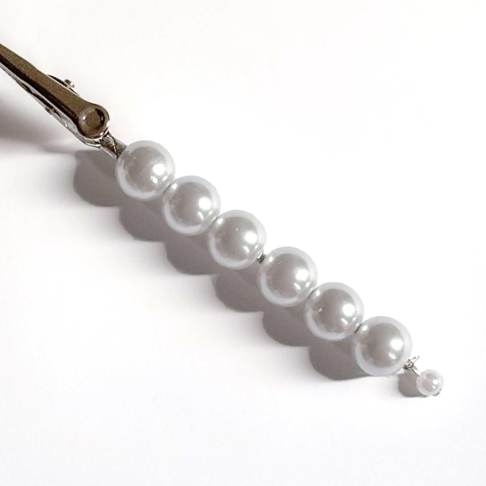 The Major Pearl J Clip is adorned with large, lustrous, luminous pearls. Handmade with lightweight imitation pearl and silver-plated brass findings, this dreamy pearl j holder is finished with a small pearl drop.