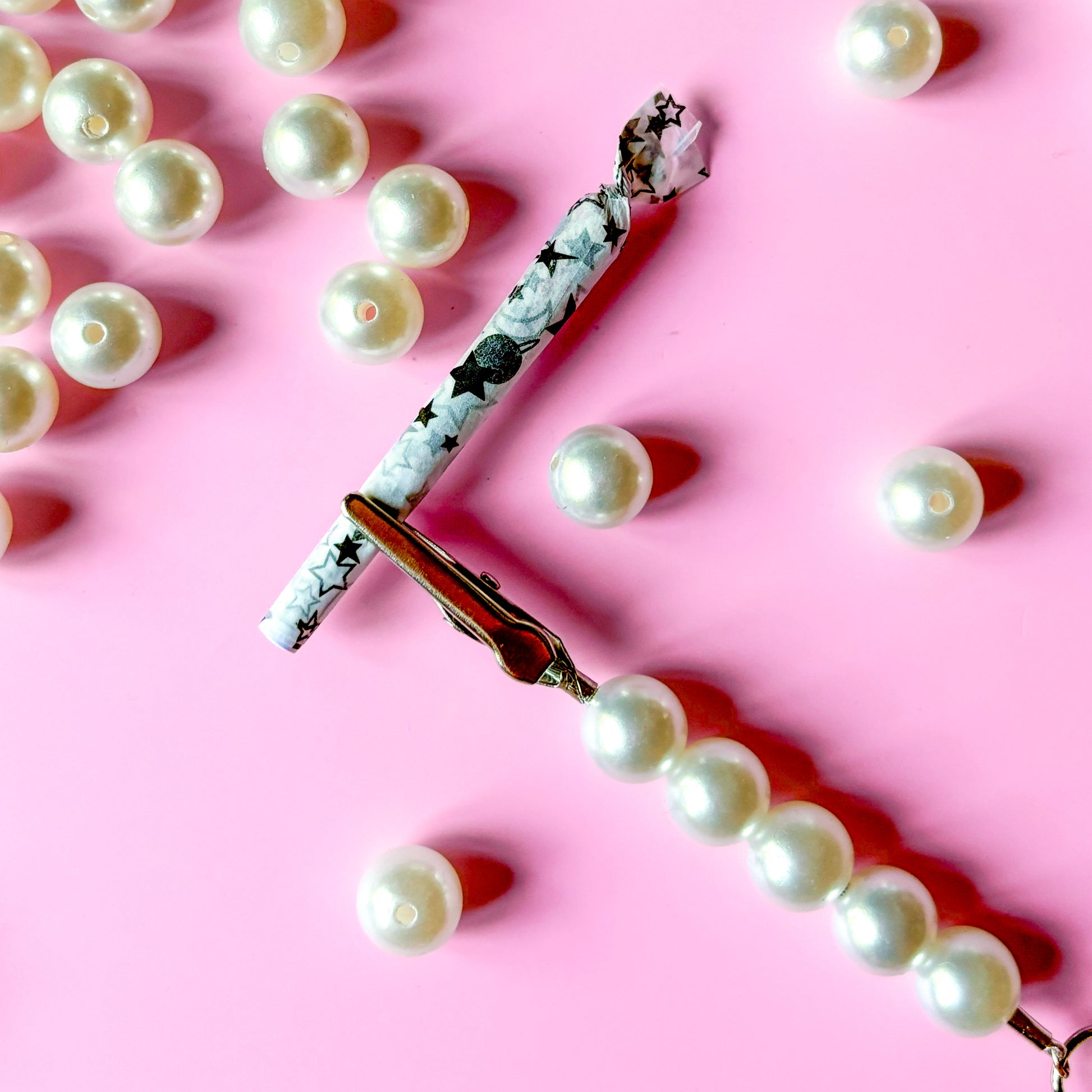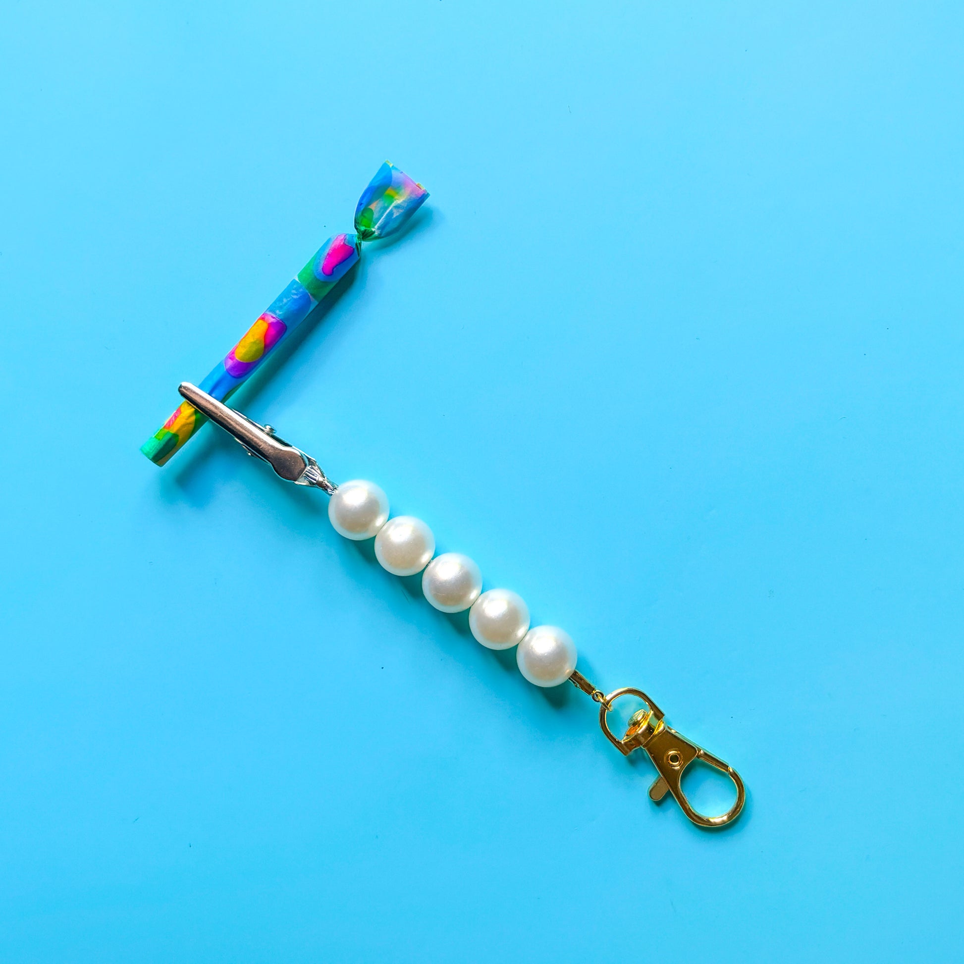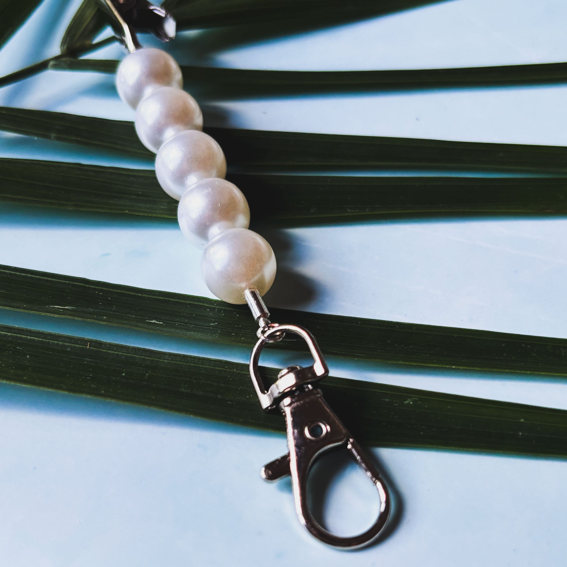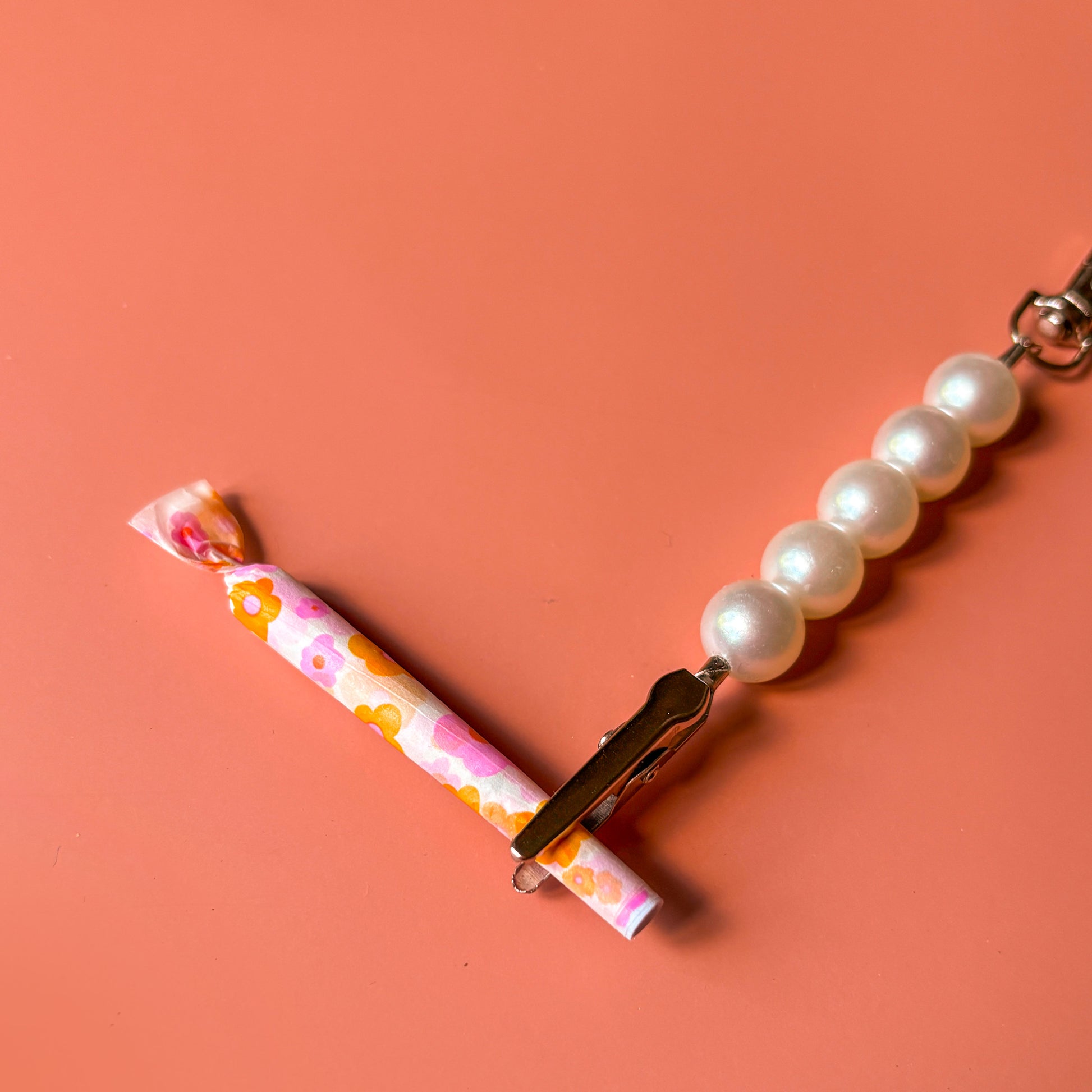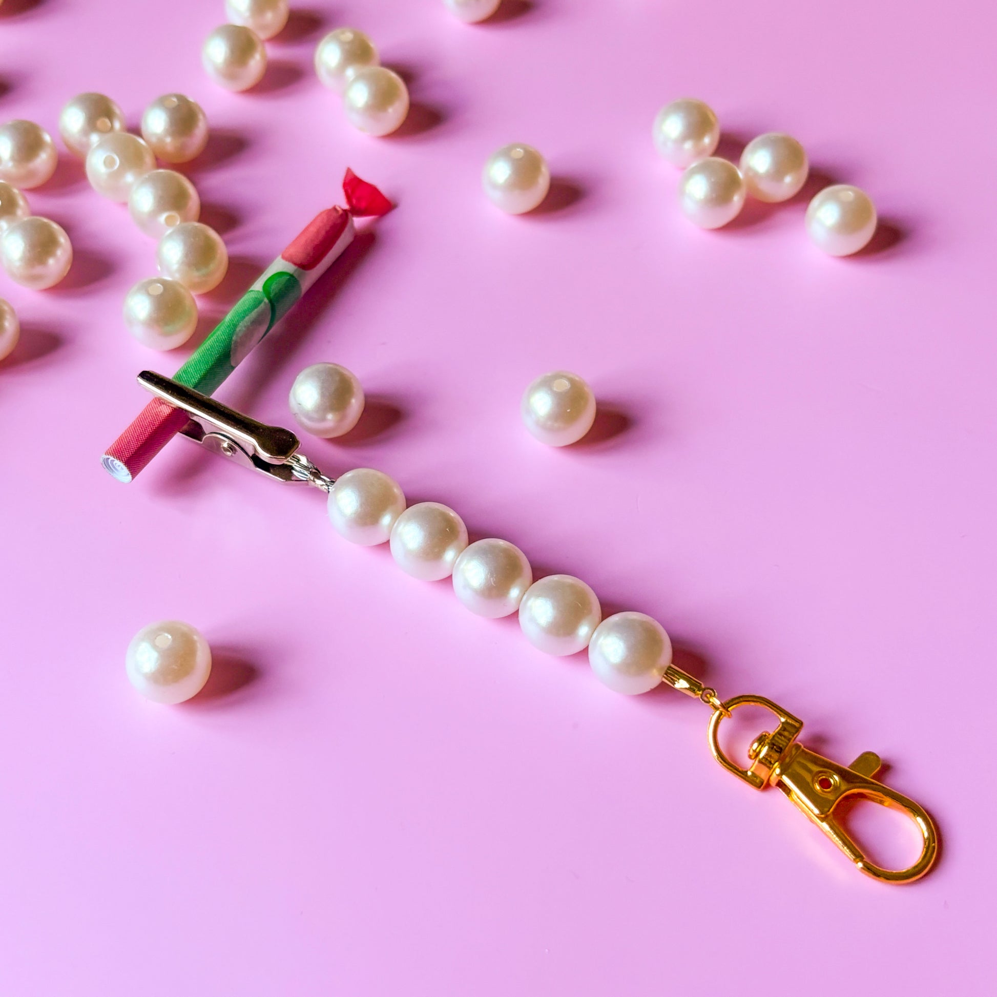 A variation of our bestselling Major Pearl J Clip, this j holder is attached to a swivel clip so you can take it on the go! Attach it to your belt loop, bag or keys to instantly elevate your look 🩷 This clip is adorned with large, lustrous, luminous pearls. Handmade with lightweight imitation pearl and the option of gold or silver-plated swivel clip.
