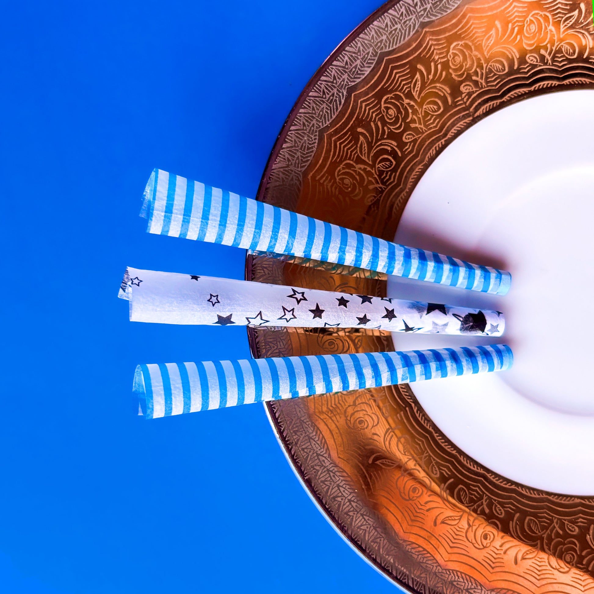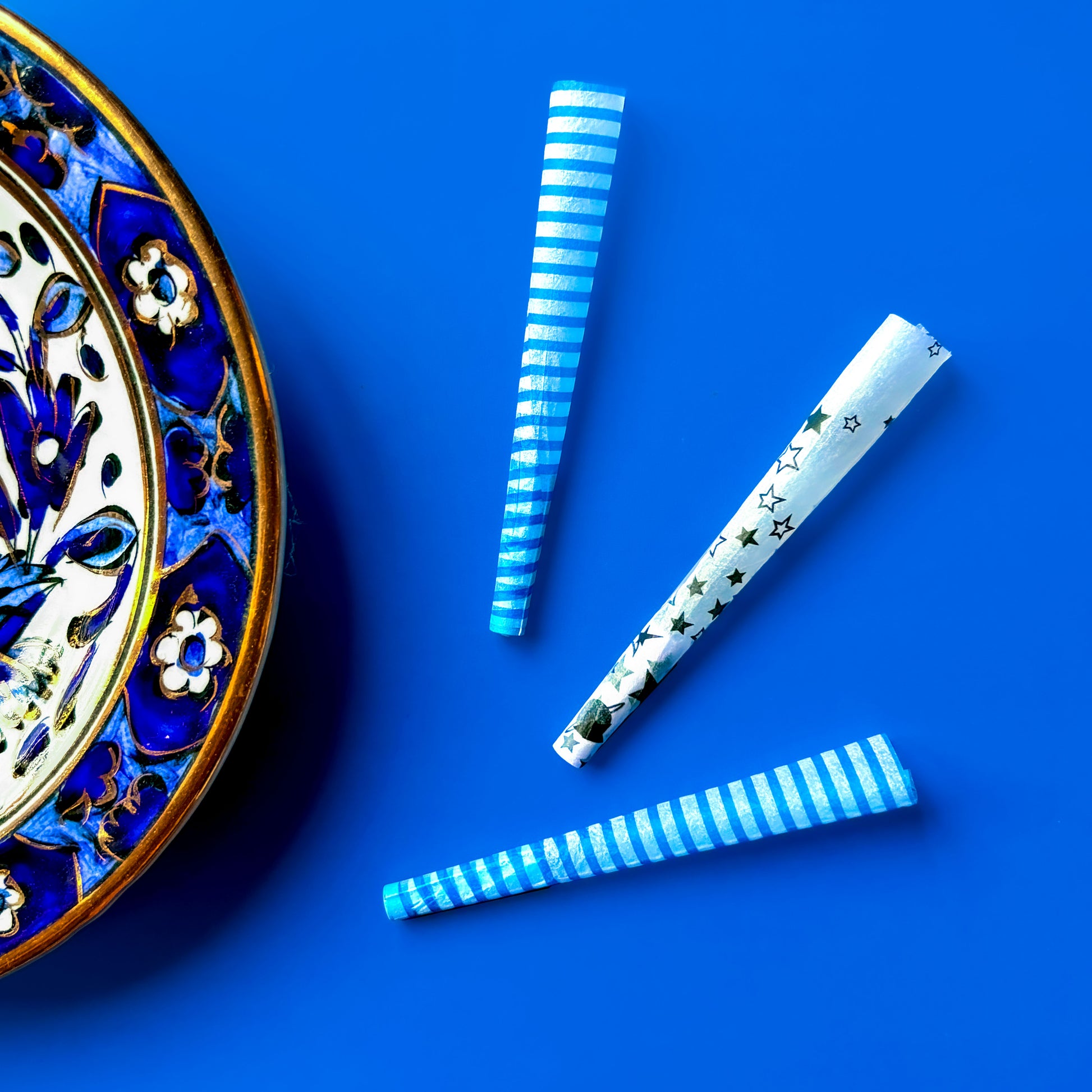 This set of 3 cones comes with 2 Daily cones and 1 Starry Night cone. Printed with plant-based inks. Each pack consists of 3 patterned cones.