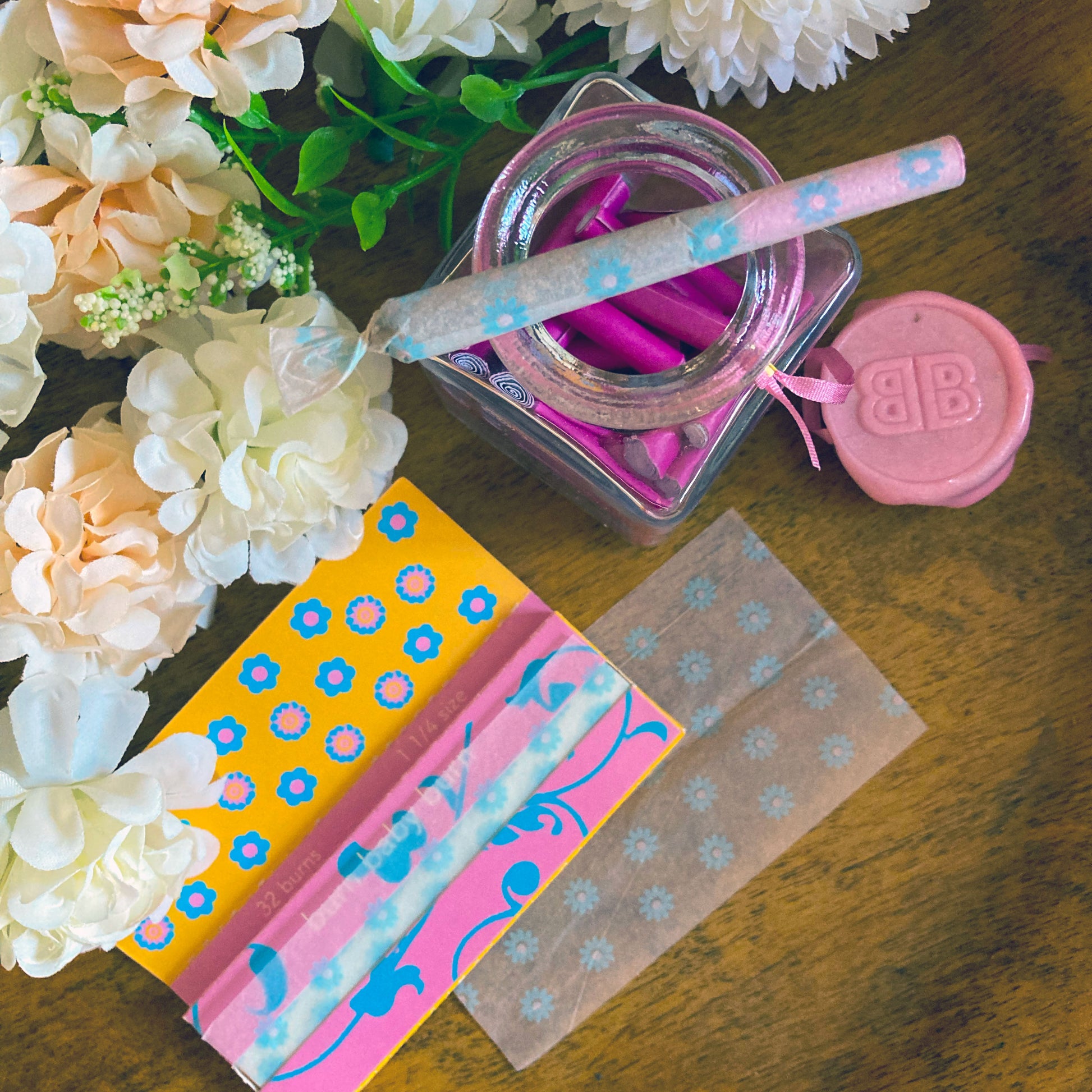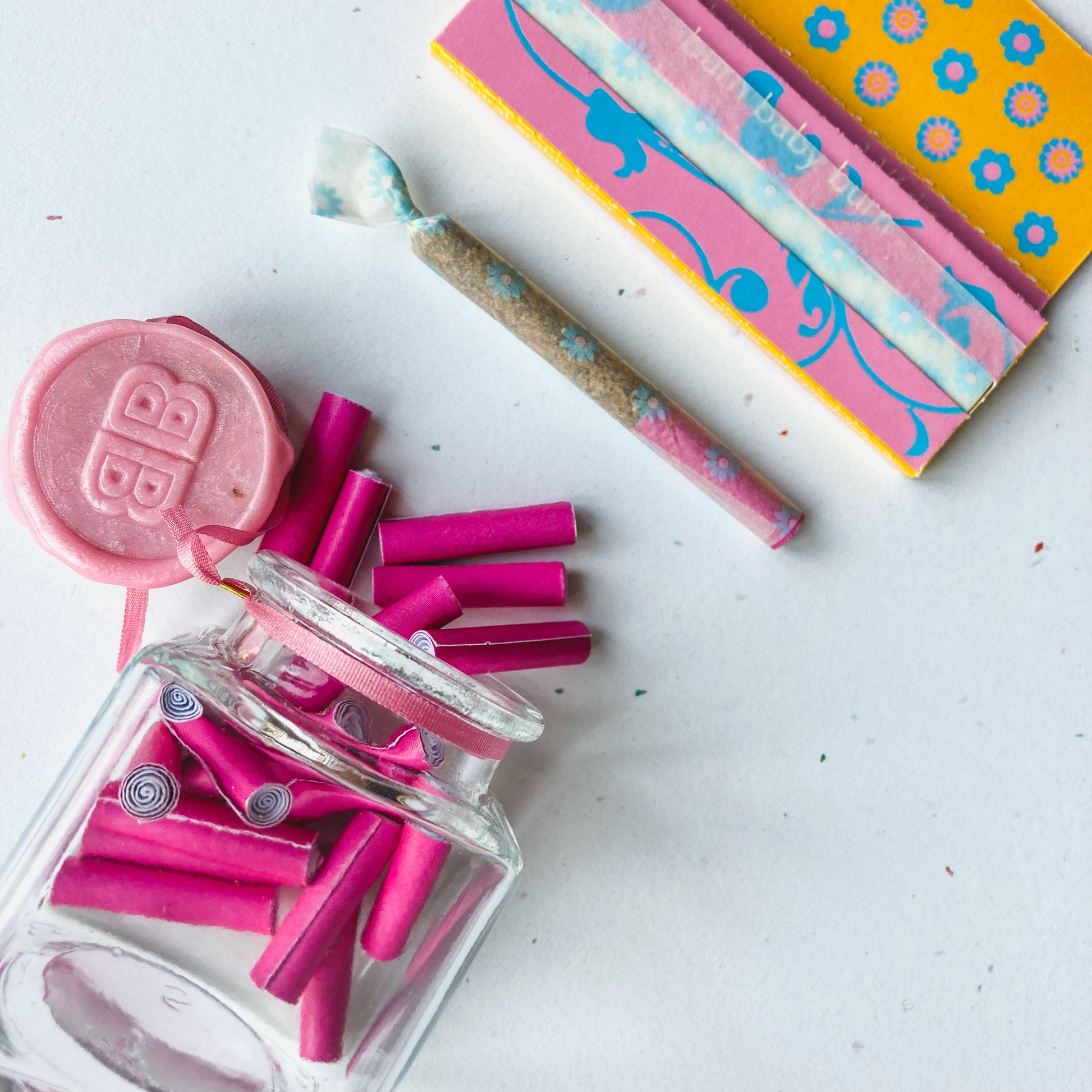 Polish your J with The Pink Filters! These crutches come in a set of 20. They look super cute with our designer papers--and they are the perfect way to add some color to ordinary papers. These coil-rolled filters are made from recycled paper.