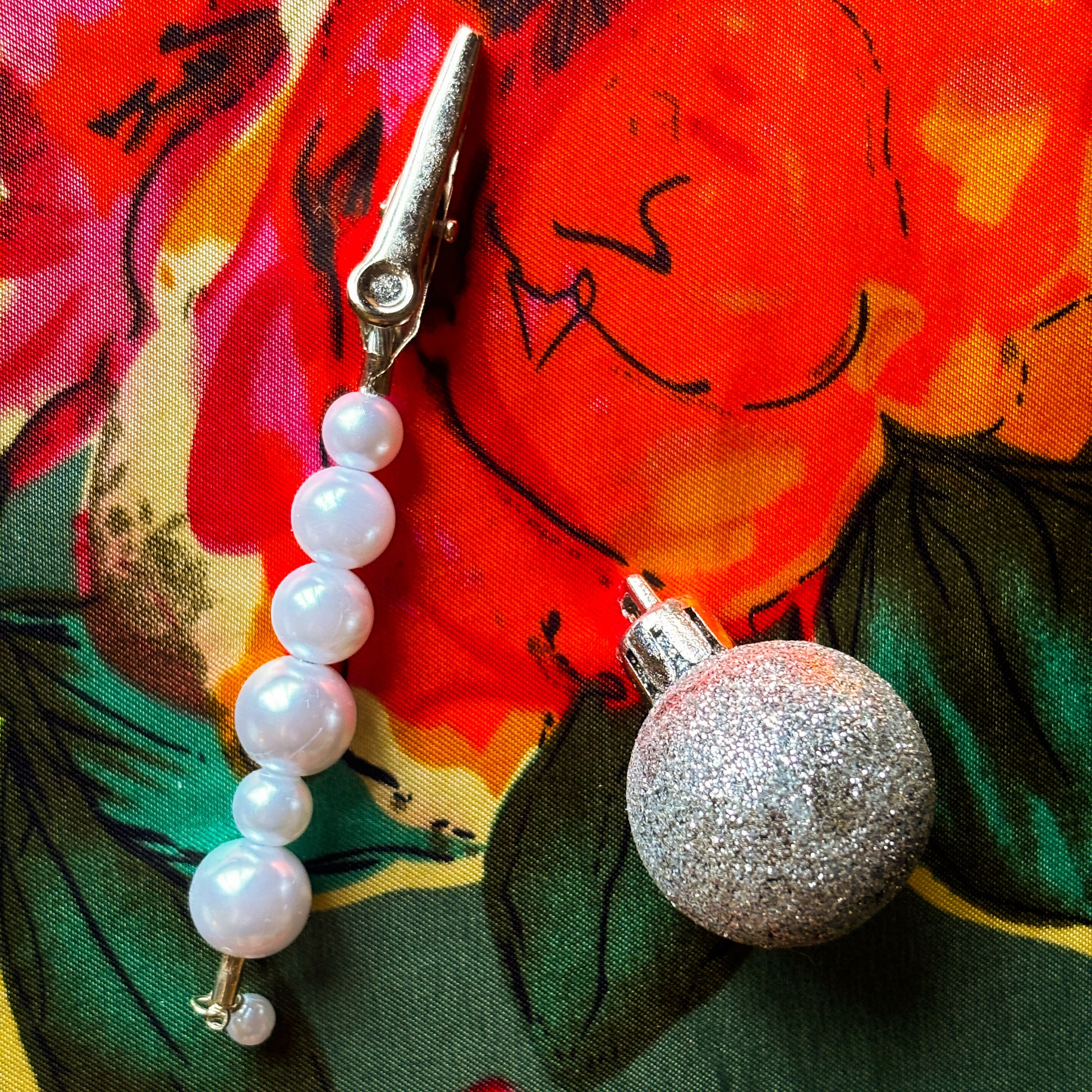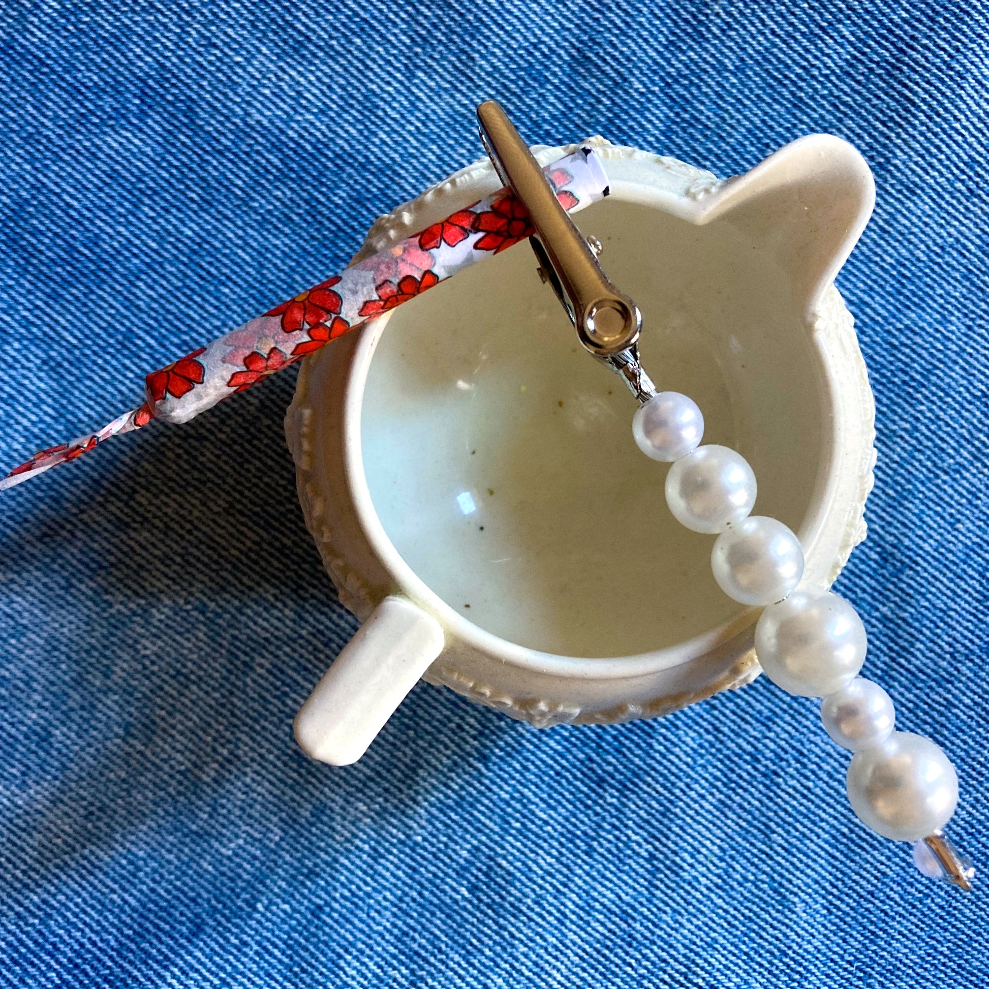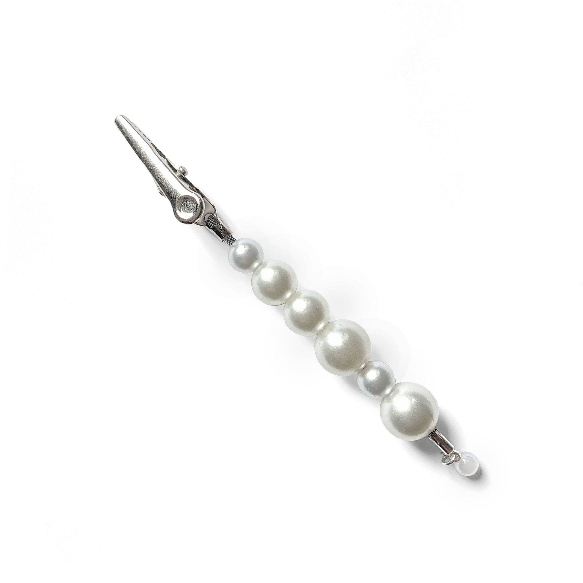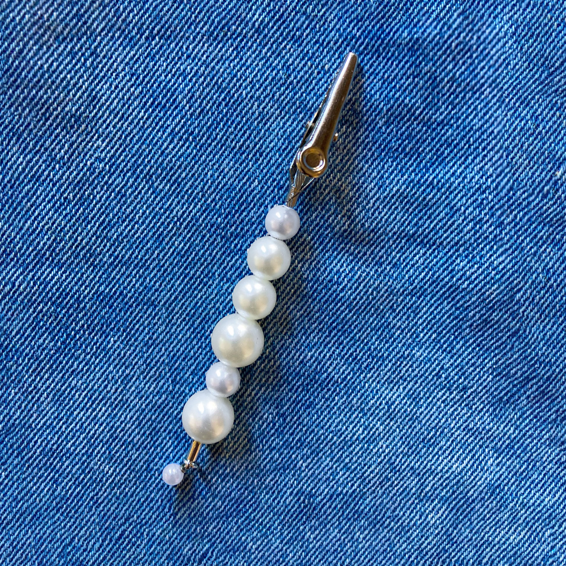 Secure your J in the clip, light up and enjoy! The Stacked Pearl J Clip is adorned with a variety of round pearls and finished with a small pearl drop. This bulbous pearl j holder is handmade with lightweight imitation pearl and plated brass findings.