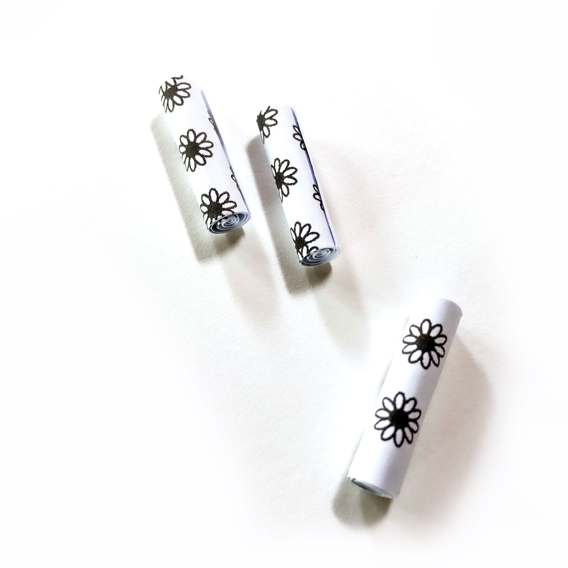 The Sunflower Filters come in a set of 20 black and white floral filters. This set of crutches is the perfect complement to our designer papers--and the best way to add some style to ordinary papers. Hand-rolled in NYC, these filters are made from recycled paper.