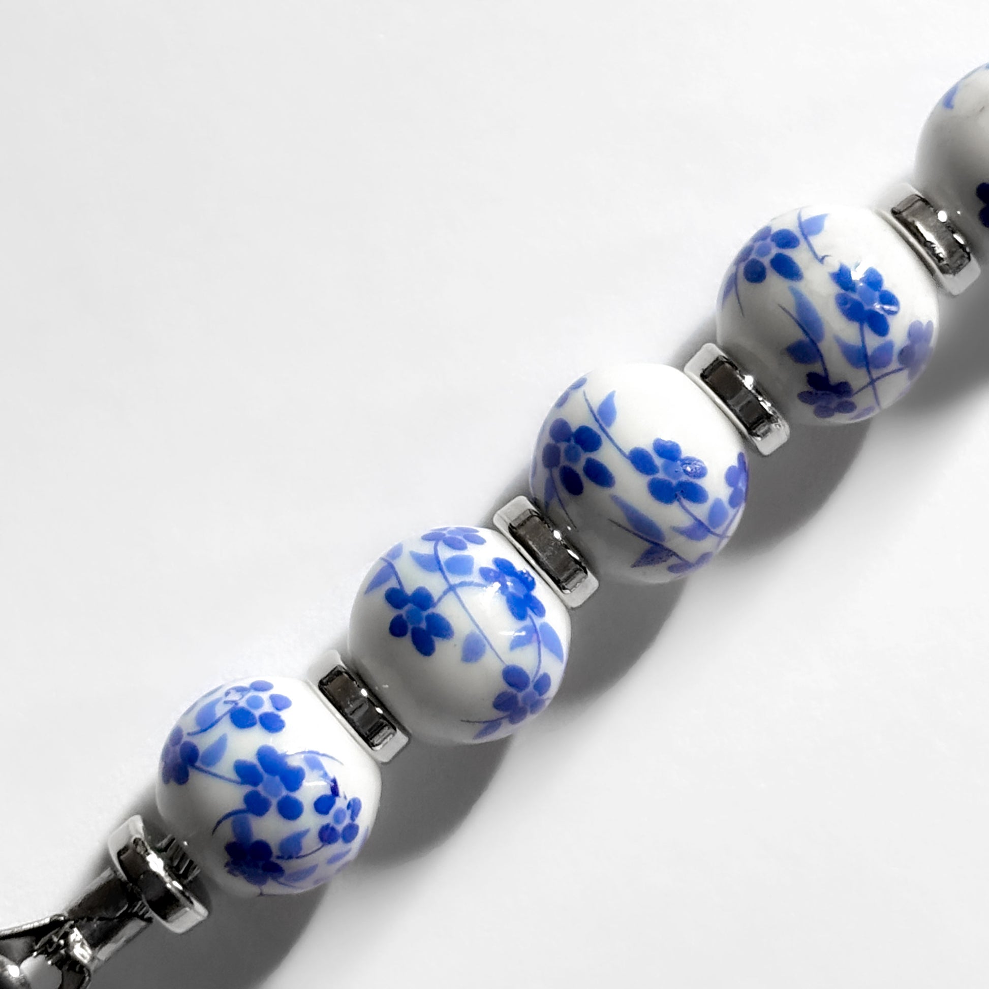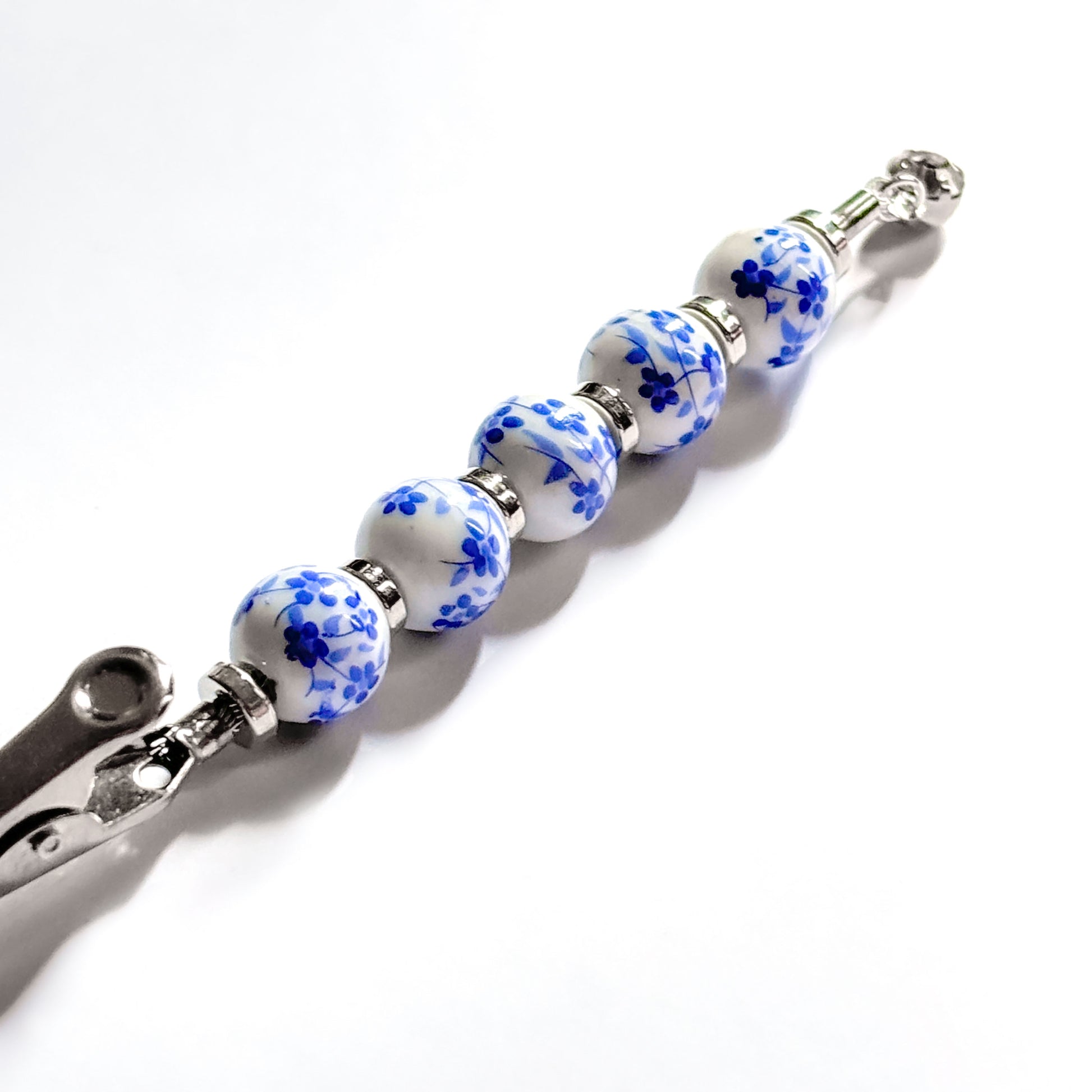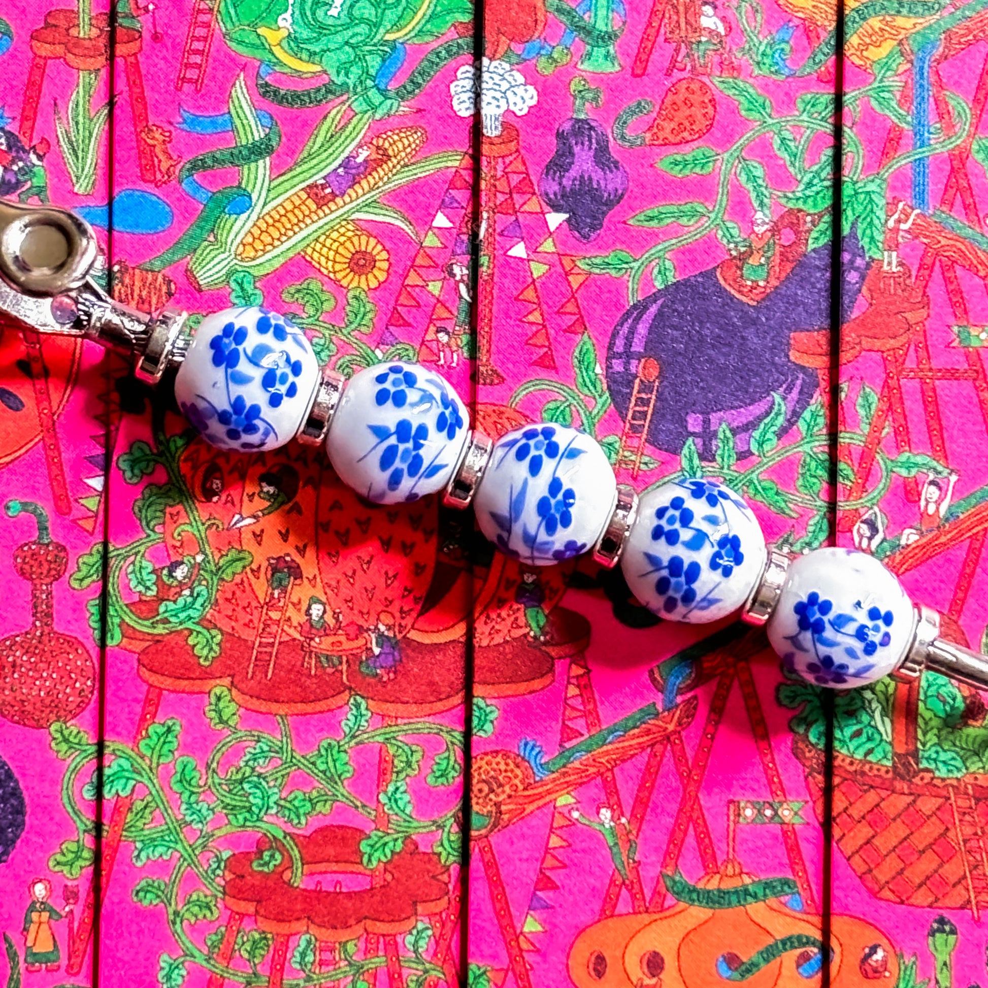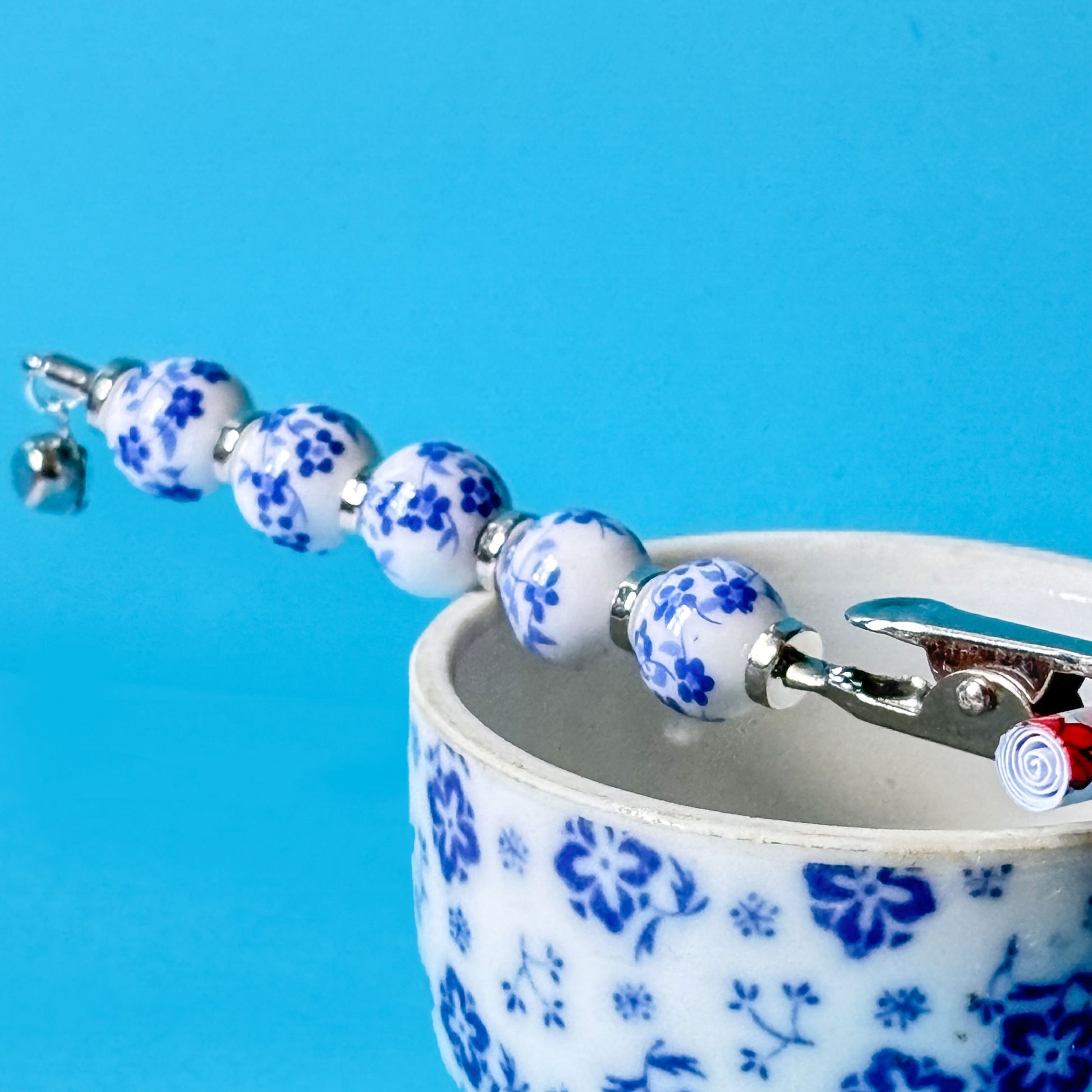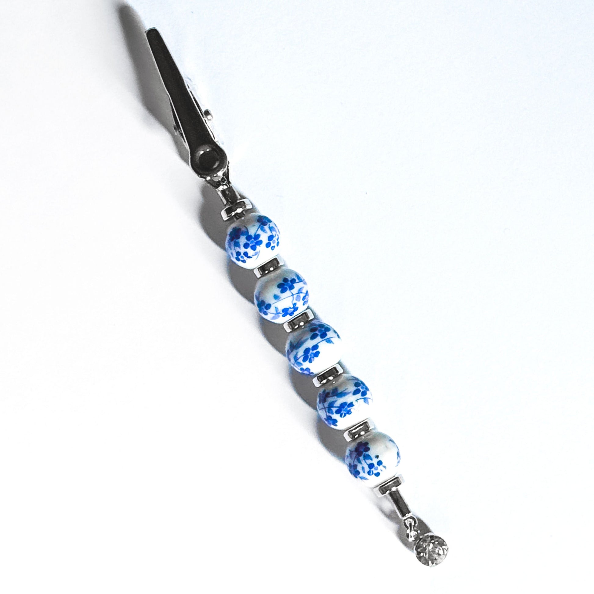 Upgrade your sesh with this chinoiserie-inspired J holder 💙 Adorned with blue and white floral beads, this J clip is handmade in NYC. Made with lightweight ceramic beads and silver-plated brass findings, the Toile J Clip is finished with a small crystal drop.