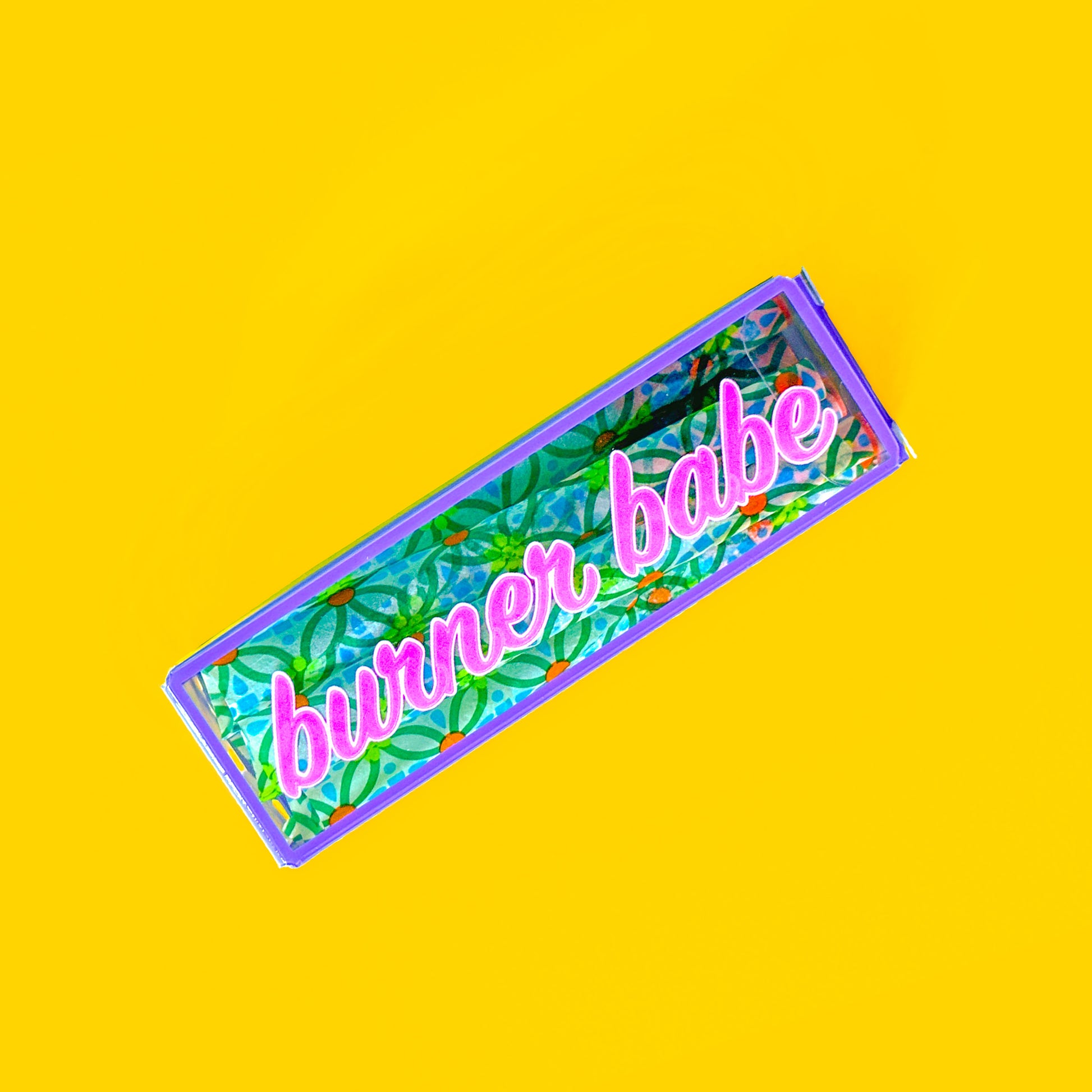 The Trellis Cones Cones are decorated in a geometric blue, green and orange pattern. Printed with plant-based inks. Each pack consists of 8 patterned cones and a tamping tool for packing.