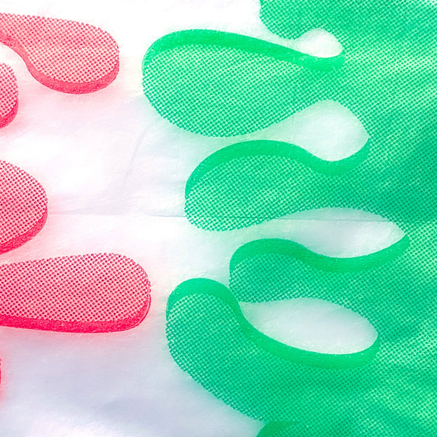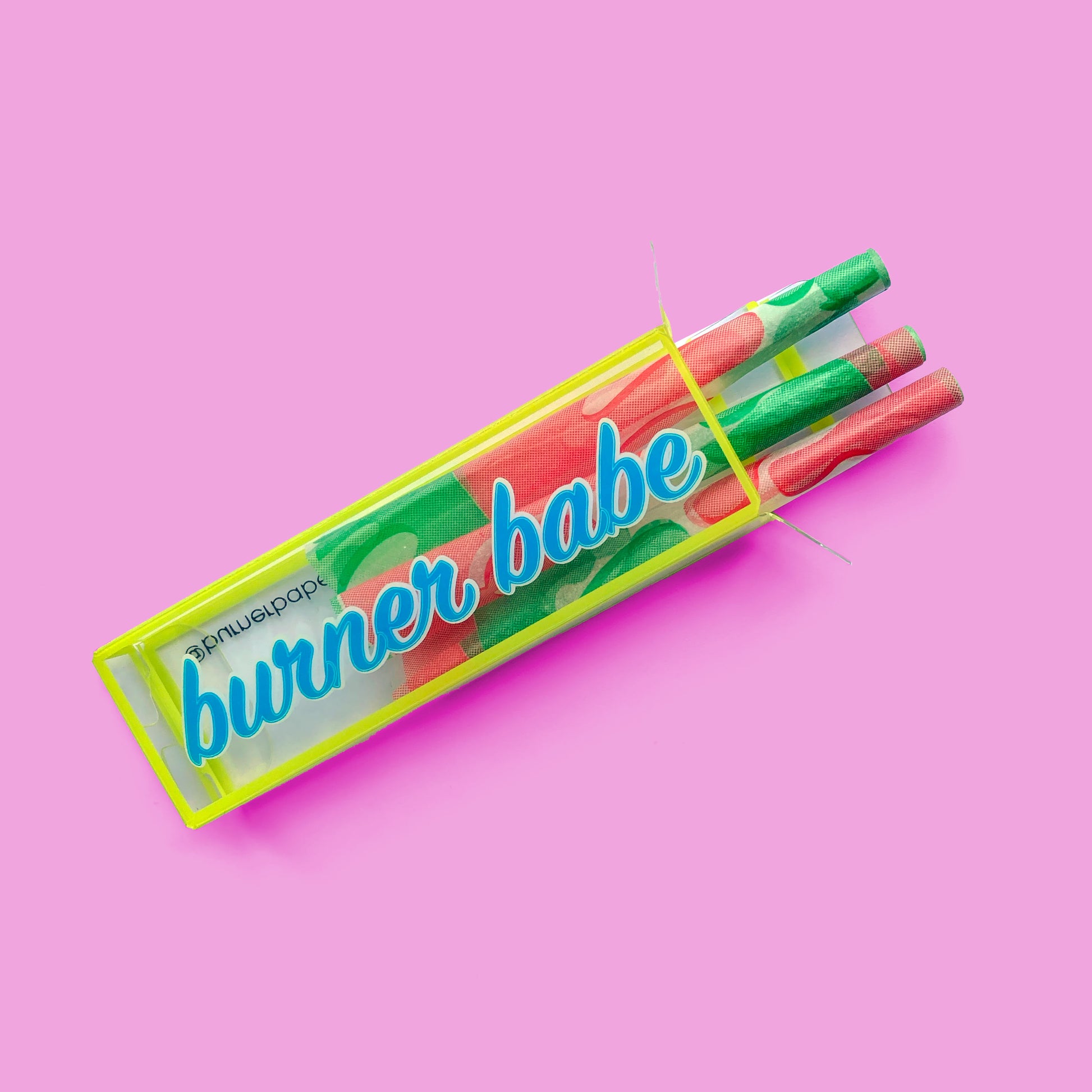 The Wavy Baby Cones are wrapped in drippy green and strawberry silhouettes. Printed with plant-based inks. The Wavy Baby Cones were designed with the screen prints of the 60's and 70's in mind. Inspired by the screen printing process, each cone is unique and features a different part of the pattern. Each pack consists of 3 patterned cones.