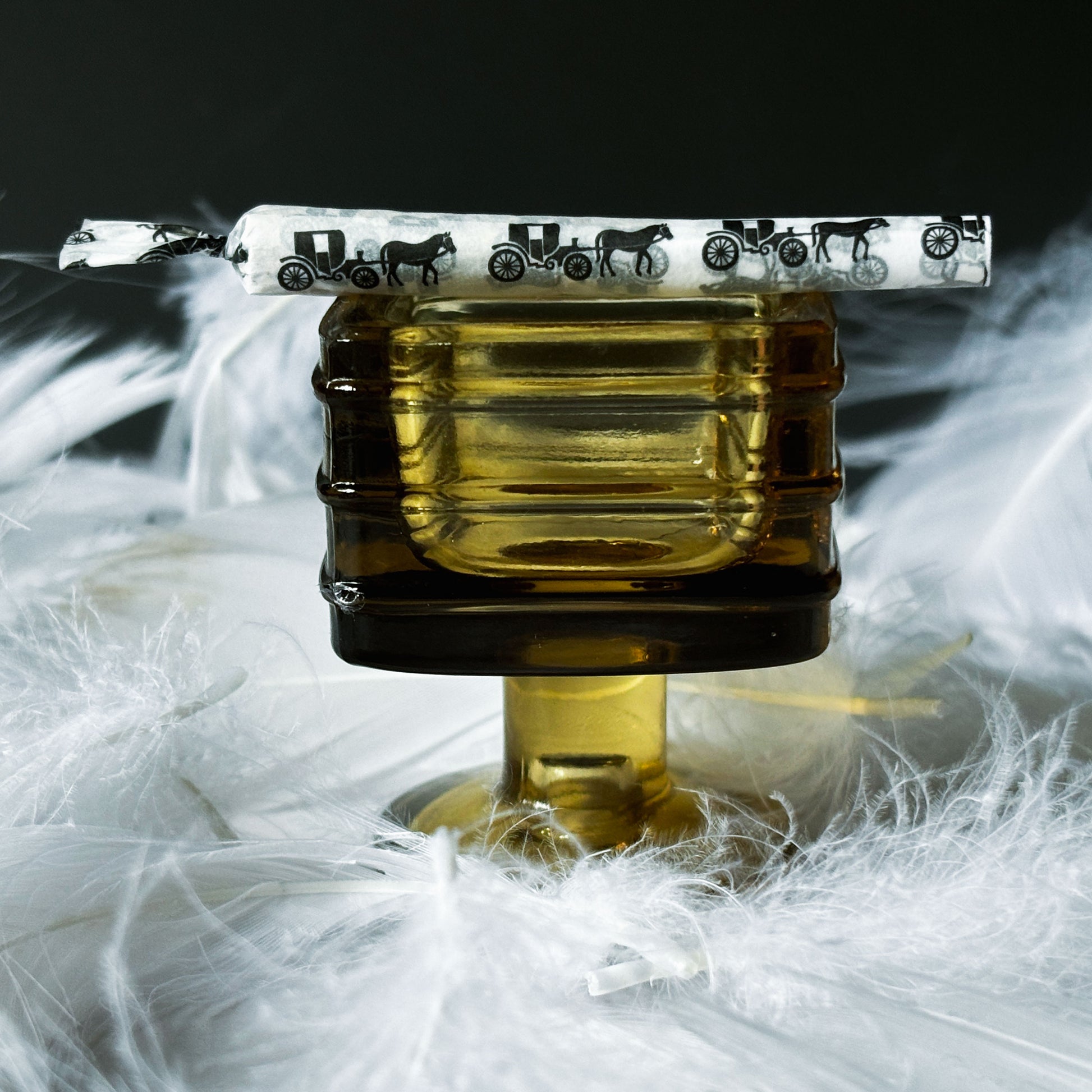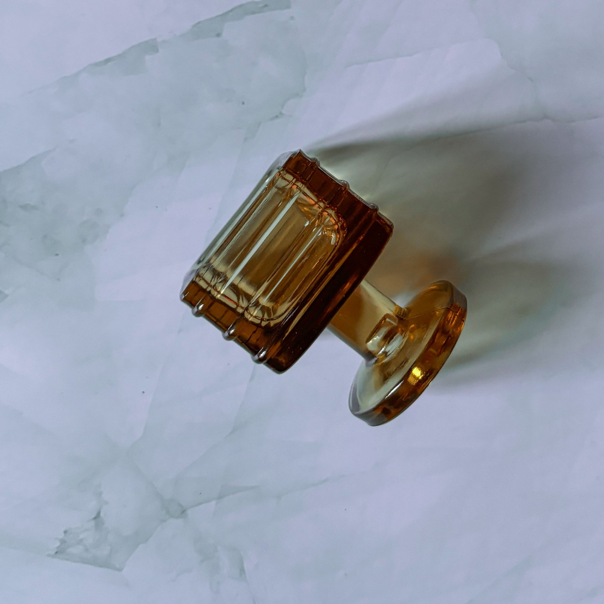 At just 2 inches tall and 1.75 inch wide, this petite ashtray is perfect for the den, the counter or the bedside table. Originally intended as salt cellars, they feature a grooved, square, well sitting atop a round-footed pedestal.