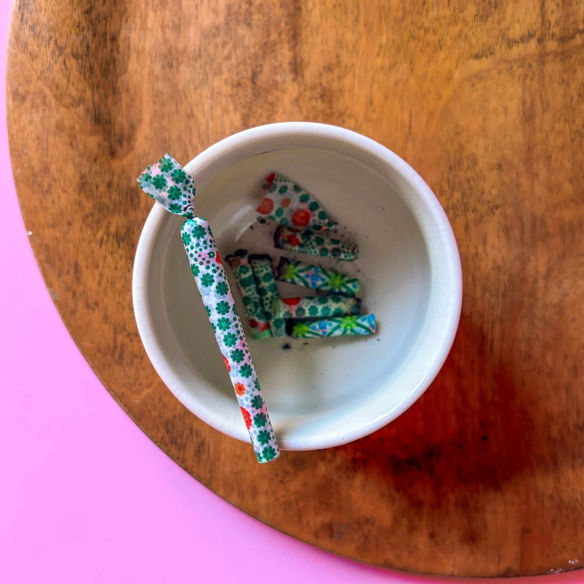 Arrives in a resealable box, cushioned in recycled tissue paper confetti.