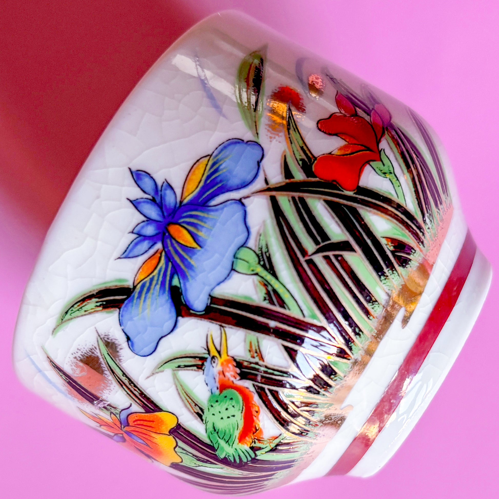 This brightly colored ashtray is decorated in both fauna and flora πΈπ¦πΌ