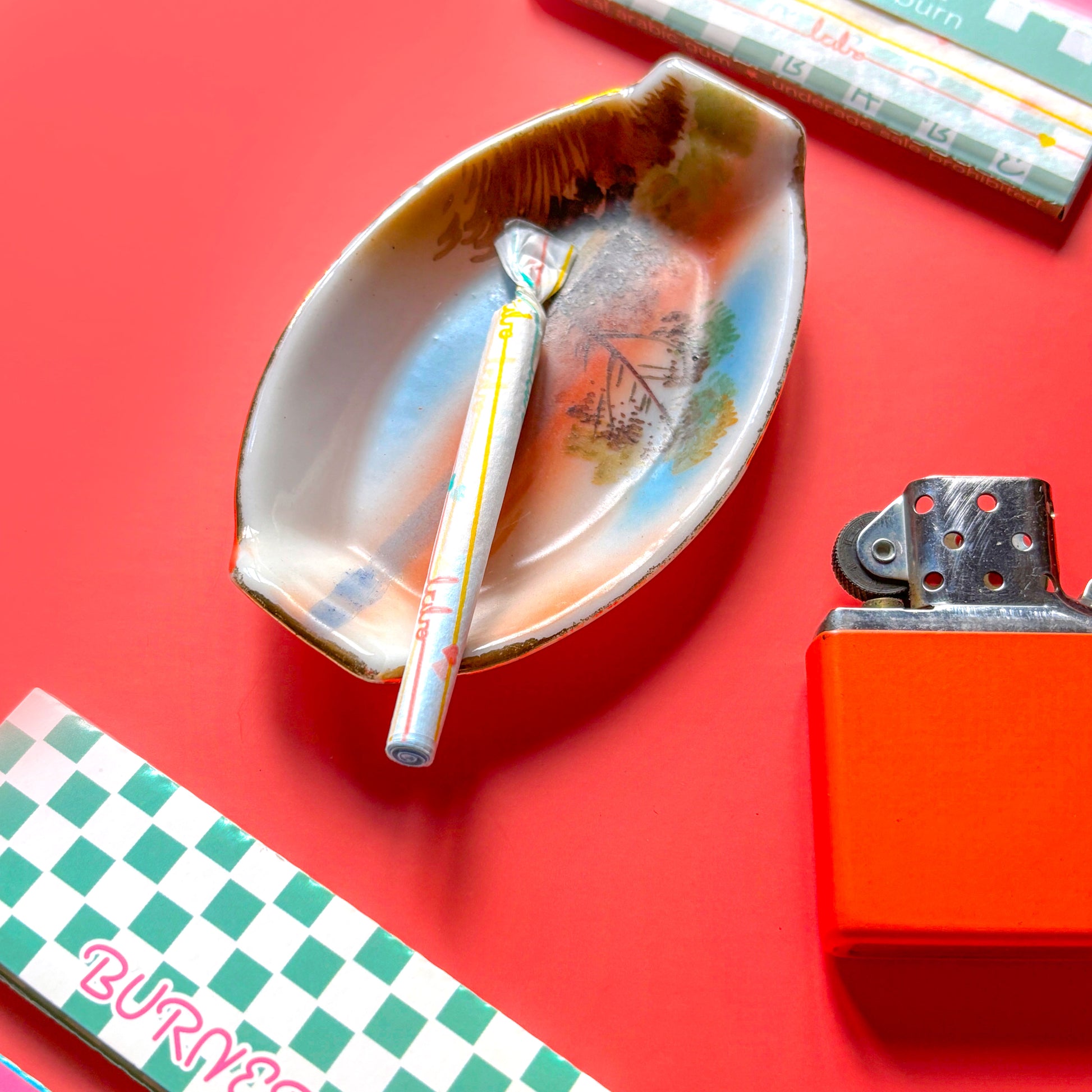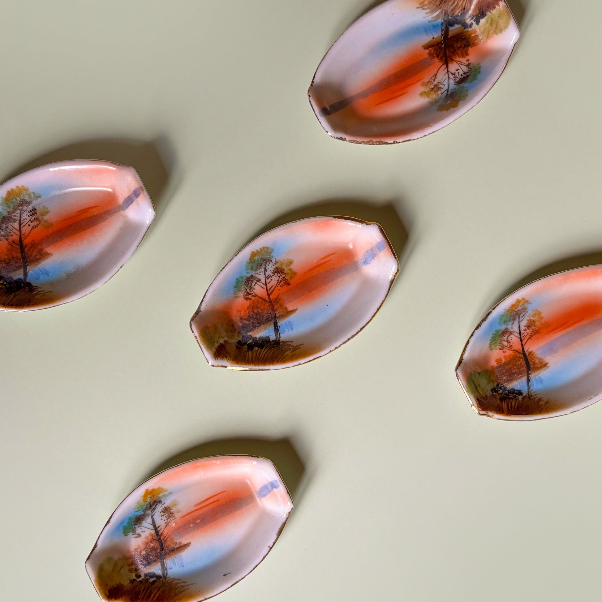 These vintage ashtrays feature a gorgeous shoreline at sunset ๐