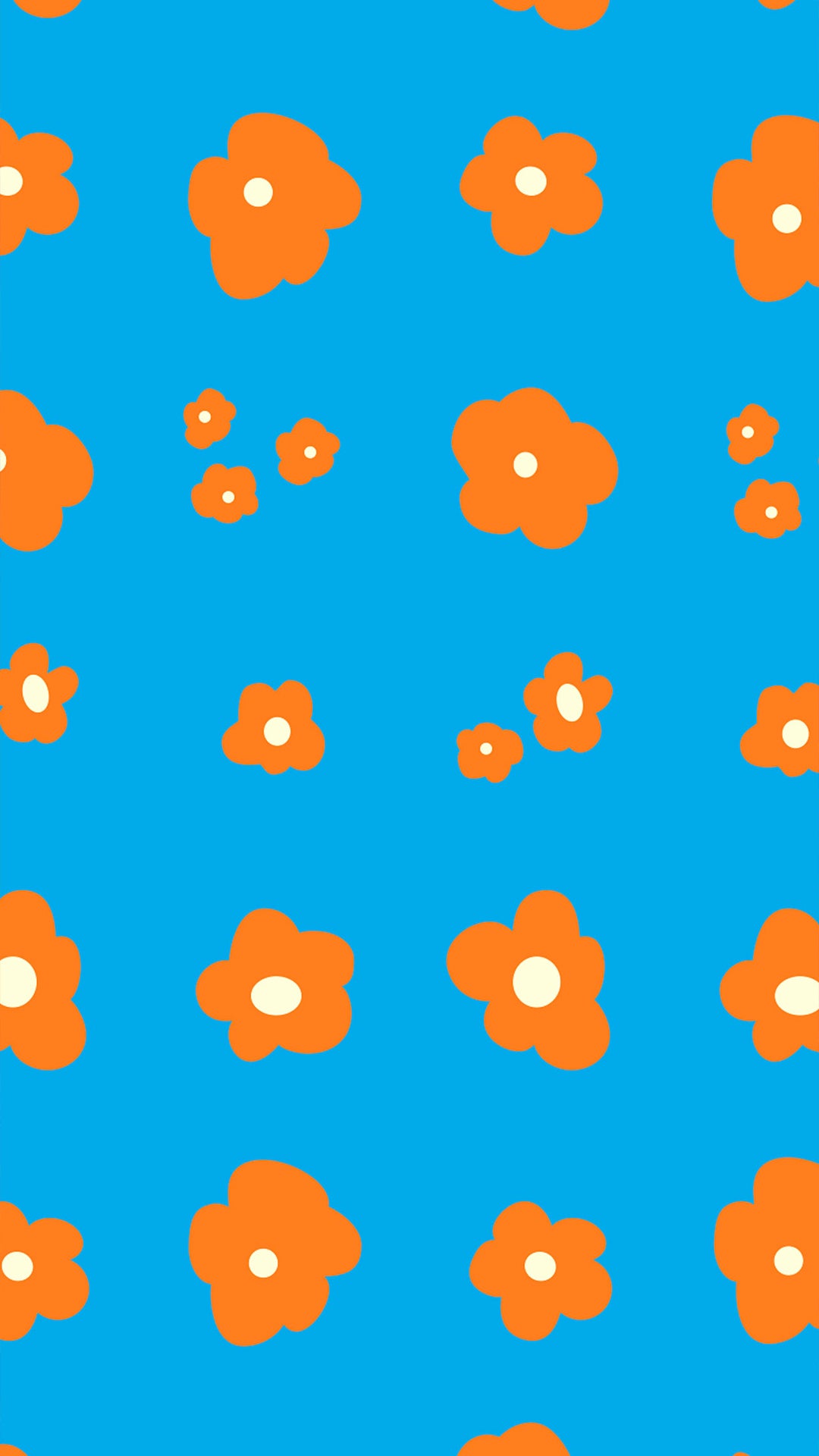 Downloadable wallpaper featuring orange flowers on a blue background 🫶