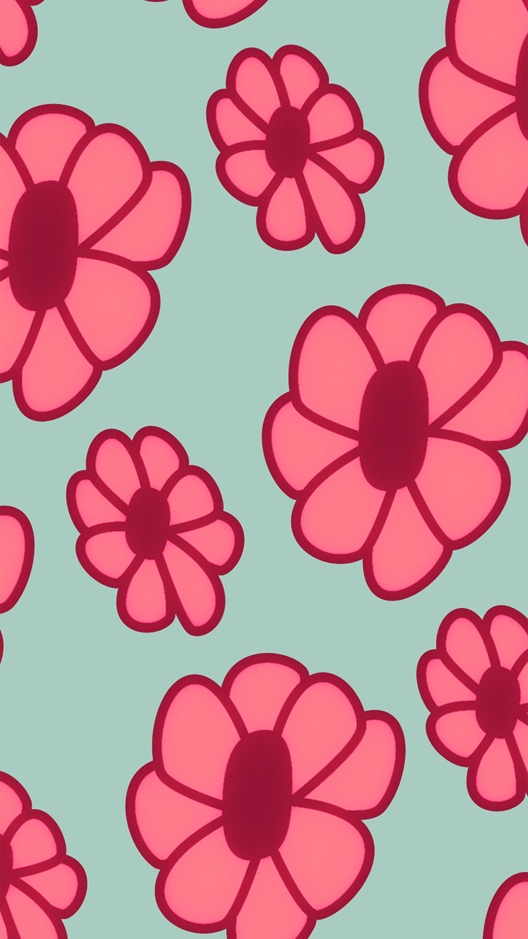 Downloadable wallpaper featuring a vintage inspired pink floral pattern on a mint background 🫶