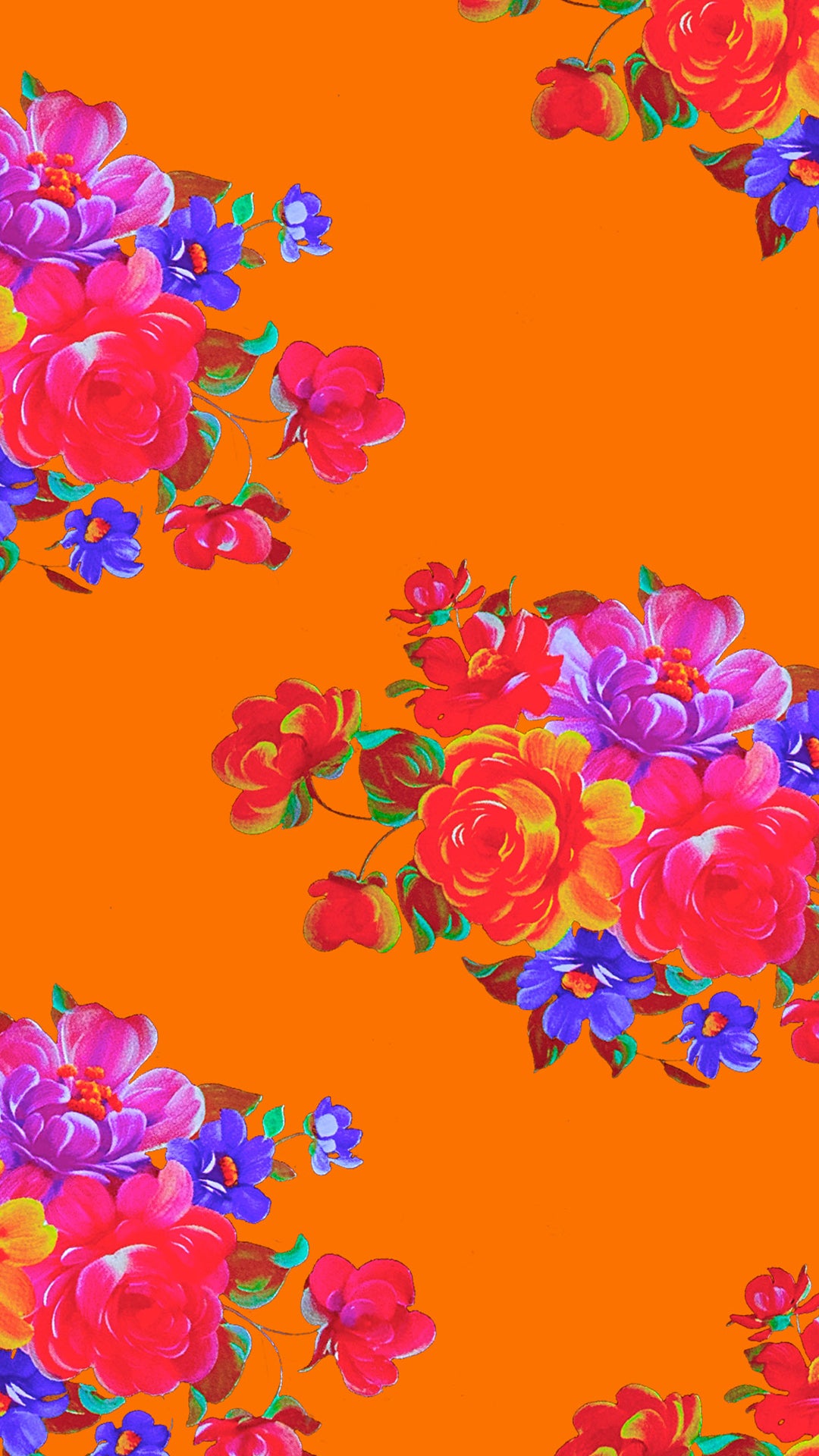 Downloadable wallpaper featuring the floral design from the Vintage Floral Black Tray on an orange background 🫶